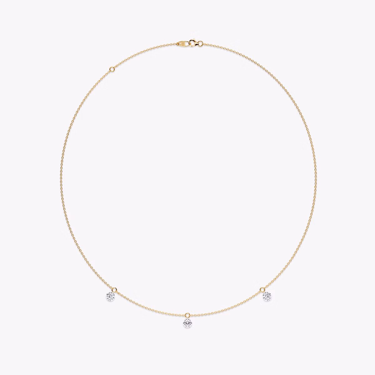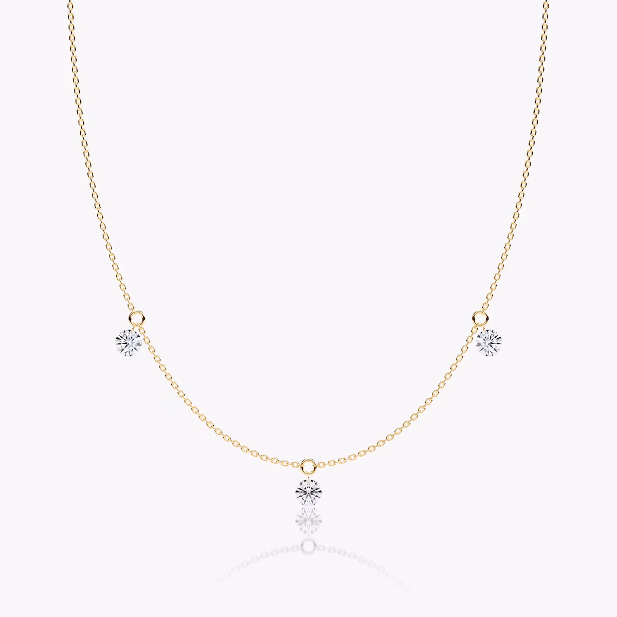 Floating Station Necklace | Round Brilliant | 14k | Yellow Gold | diamondCount: 3 | diamondSize: original | chainLength: 16-18