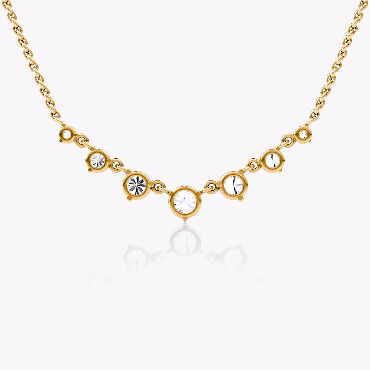 Seven graduated Round Brilliant VRAI created diamonds are linked together in a minimal setting that is both modern and romantic. Express your style authentically on your special day and every day by selecting a 14k solid yellow or white gold chain.