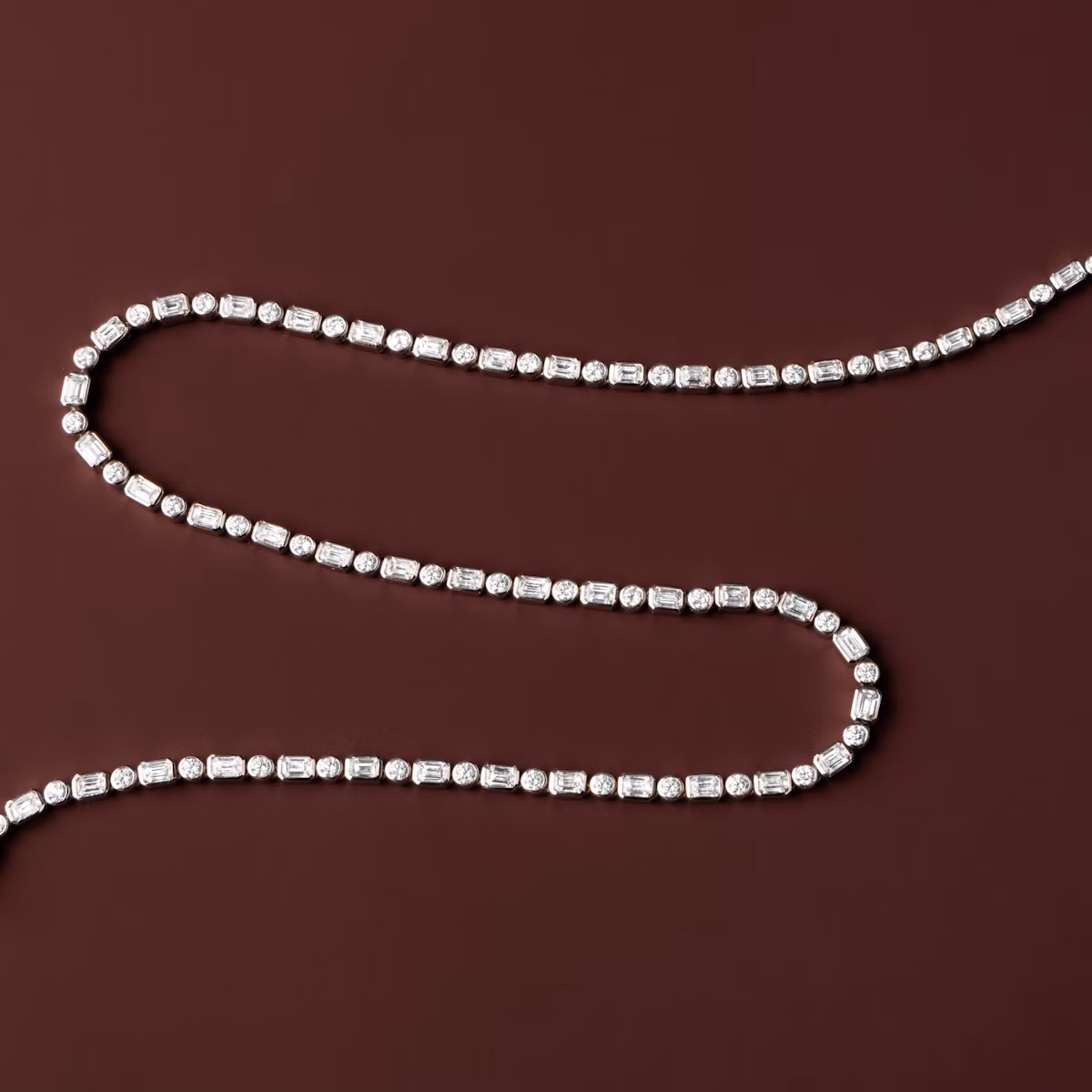 Both playful and refined, the Mixed Bezel Tennis Necklace combines vintage-inspired detail and modern appeal for a look that’s timelessly elegant. A platinum or solid gold bezel setting outlines an endless array of Round Brilliant and Emerald cut VRAI created diamonds in a design that lays flush against your neckline for an elegantly daring profile.