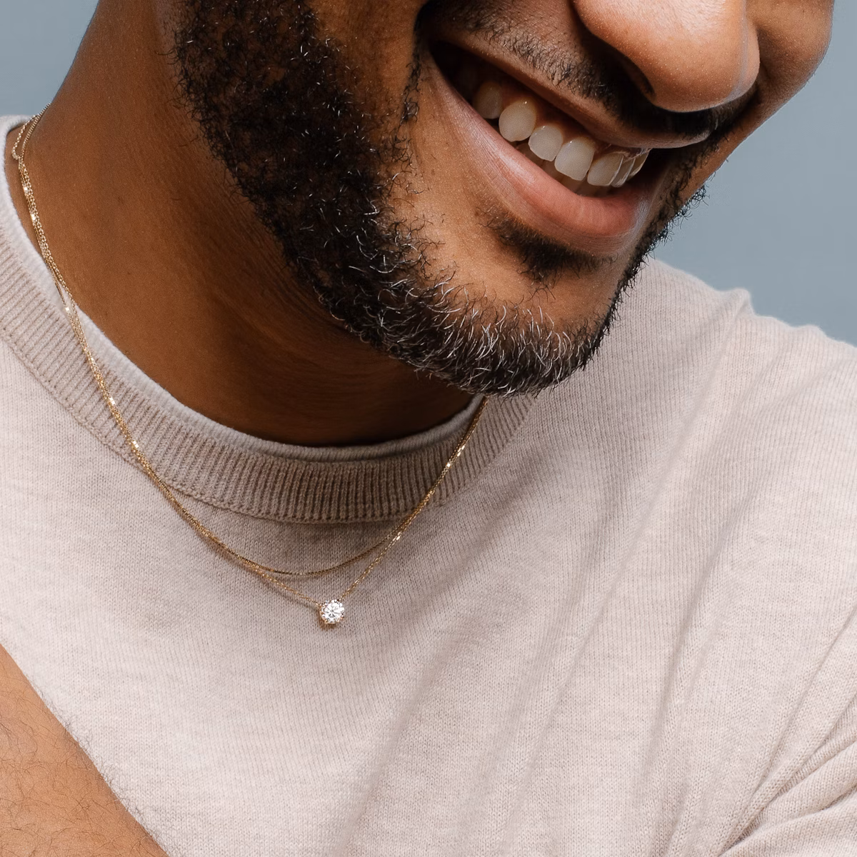The VRAI Solitaire Necklace is a timeless staple featuring a VRAI created diamond on a 14k solid gold chain. Refined to the core, our prong setting features an open back gallery inviting light in from all angles for maximum brilliance.