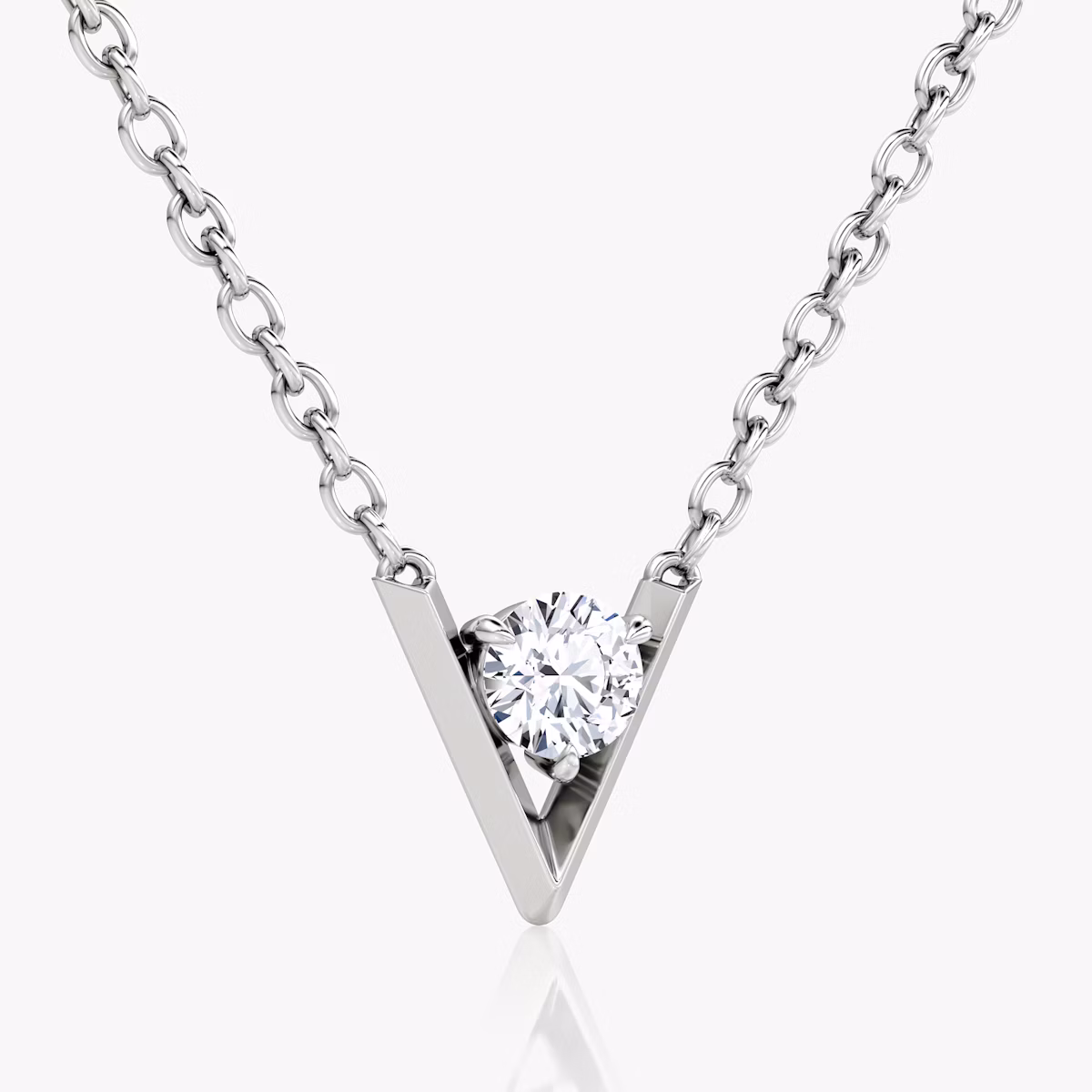 VRAI V Solitaire Necklace | Round Brilliant | 14k | White Gold | caratWeight: 0.10ct