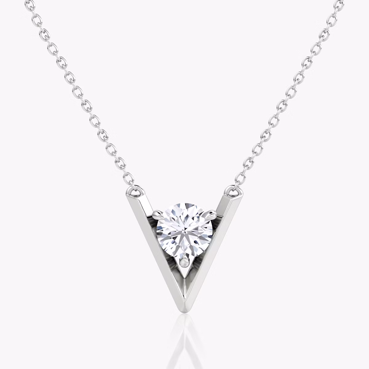 A design that redefines timeless. Inspired by VRAI’s signature motif, the VRAI V Solitaire Necklace features a solid gold or sterling silver adjustable chain, as well as knife-edge V that lifts and secures a Round Brilliant VRAI created diamond in place. While the V adds dramatic depth, the center stone remains visible from every angle for guaranteed shine.