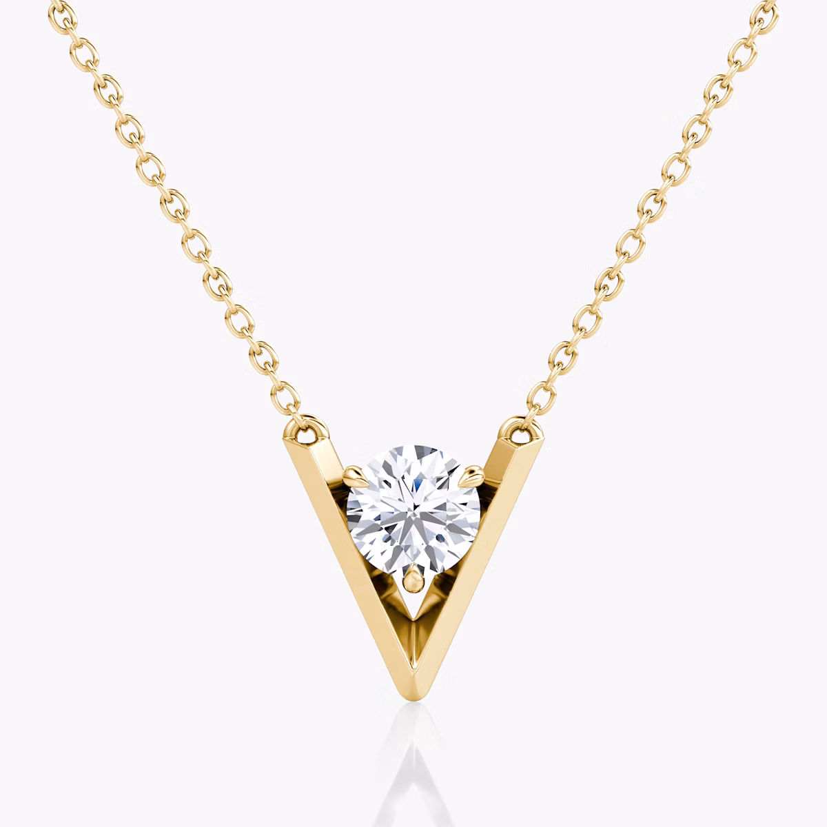 A design that redefines timeless. Inspired by VRAI’s signature motif, the VRAI V Solitaire Necklace features a solid gold or sterling silver adjustable chain, as well as knife-edge V that lifts and secures a Round Brilliant VRAI created diamond in place. While the V adds dramatic depth, the center stone remains visible from every angle for guaranteed shine.