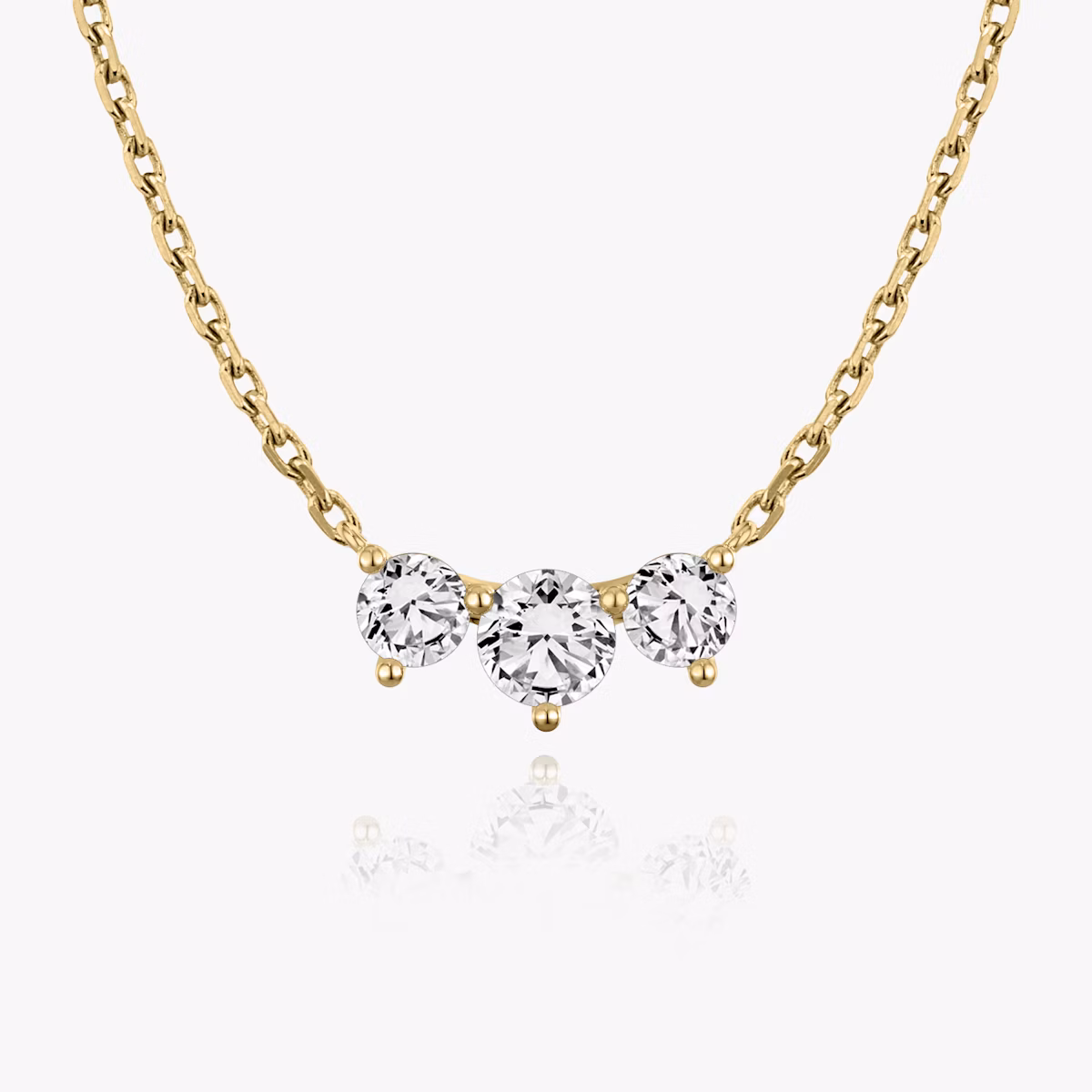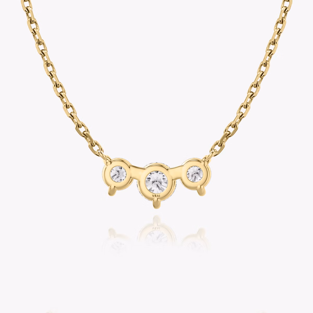 Our Arc Necklace symbolizes the meaning and moments to keep close to their heart. This celebratory design features an ensemble of VRAI created diamond shapes highlighted in a 14k solid gold setting and matching chain for spectacular shine.