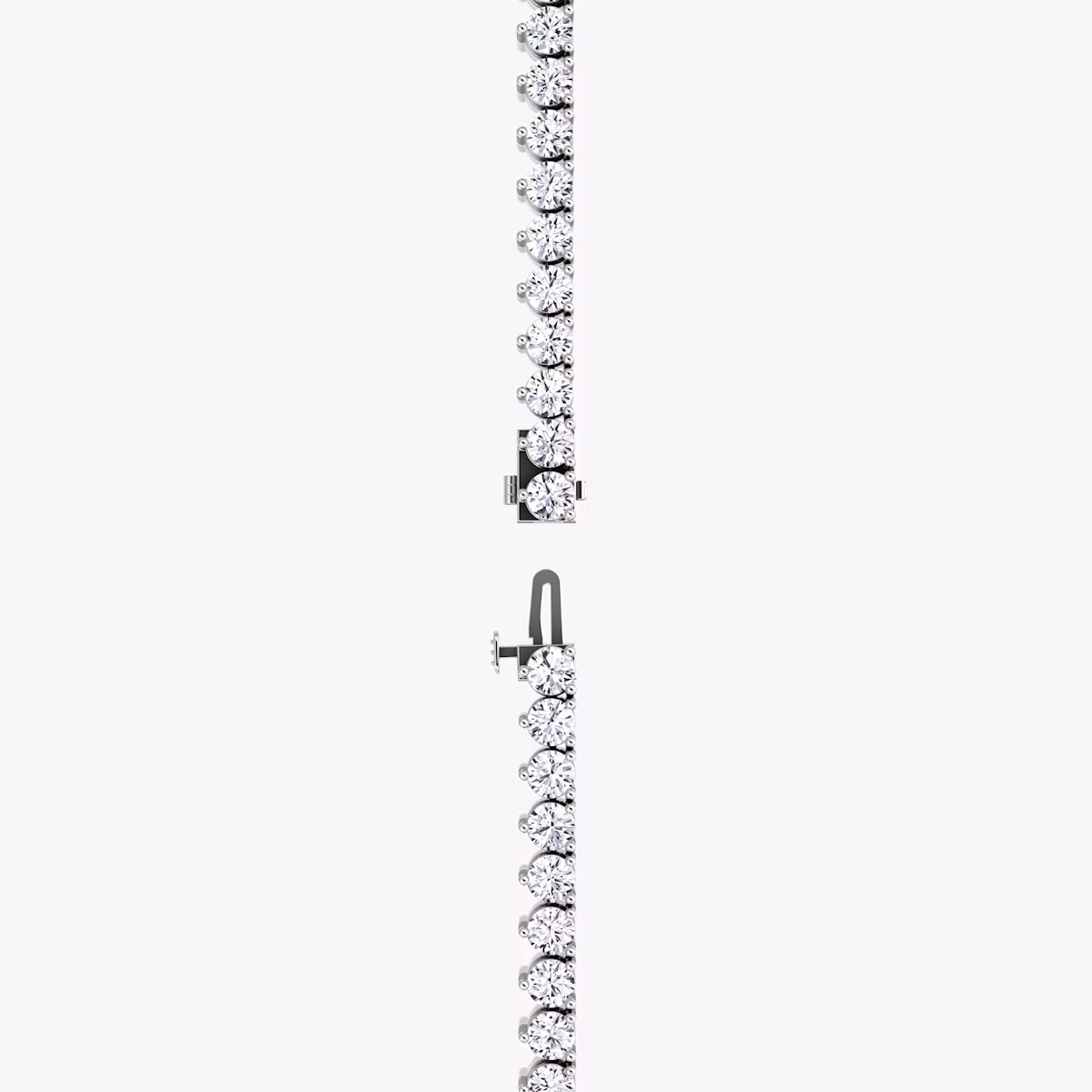 Dramatically decadent and refined, the Mixed Drop Tennis Necklace highlights nearly 40 carats of VRAI created diamonds in unparalleled elegance. A solid 14k white gold prong setting holds an endless array of Round Brilliant VRAI created diamonds in a design that lays flush against your neckline, while Pear and Oval shape VRAI created diamonds dangle below for added allure.