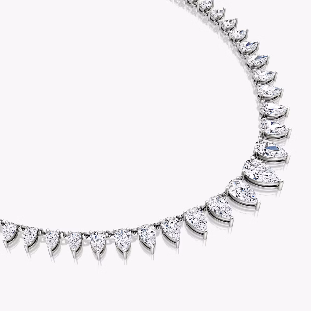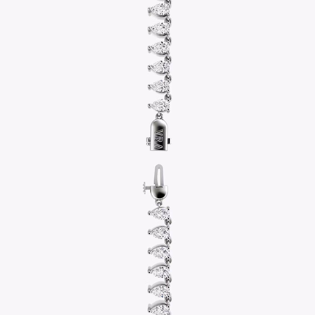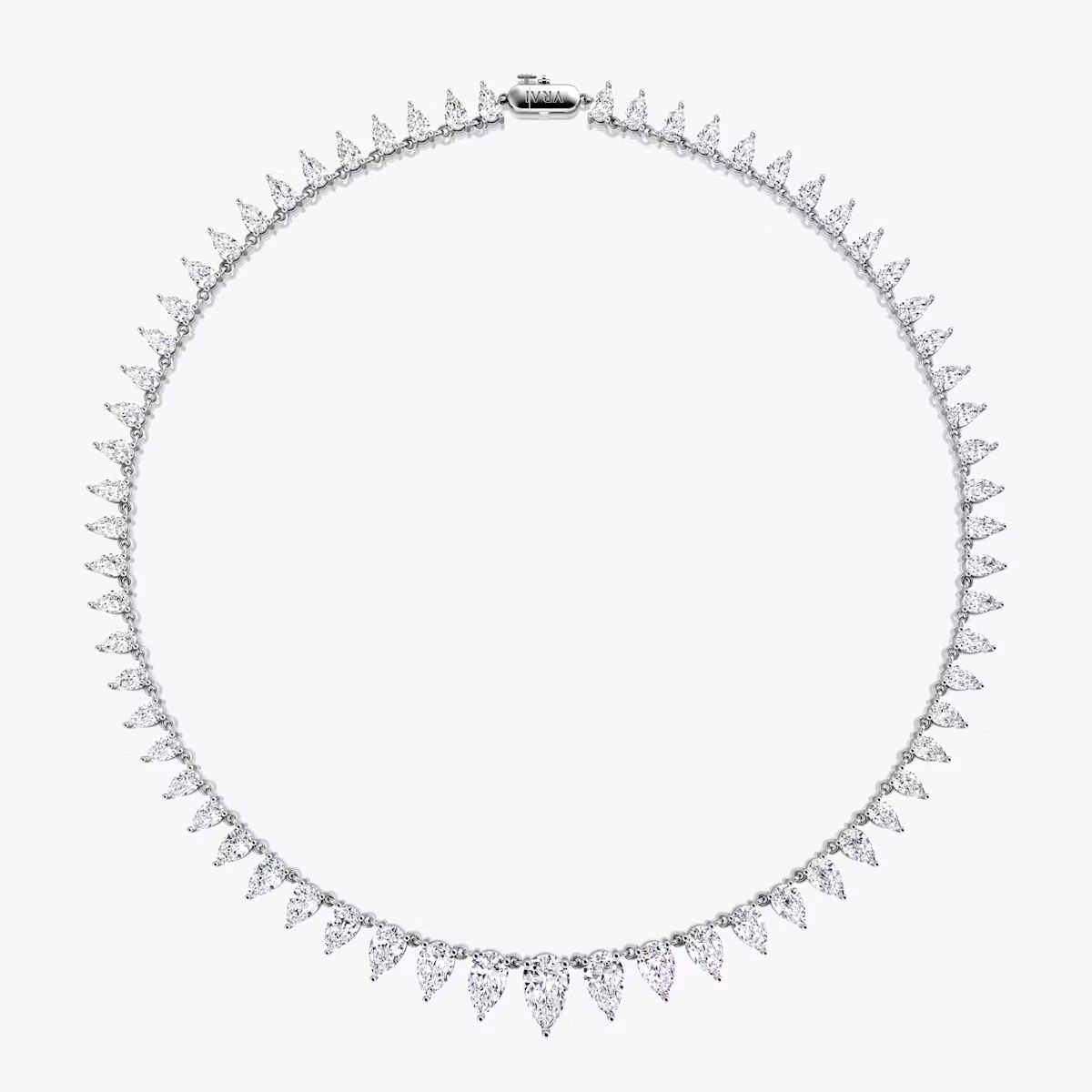 Heirloom-inspired and refined, the Pear Tennis Necklace highlights this romantic and beloved fancy diamond shape. A solid 14k white gold prong setting holds an endless array of Pear cut VRAI created diamonds in a design that lays flush against your neckline for an elegantly daring profile.