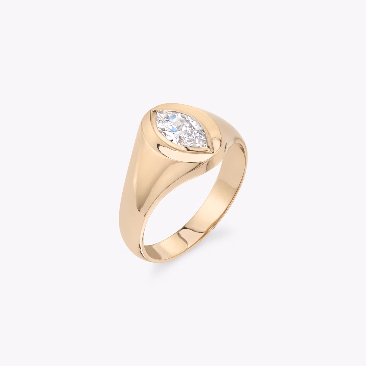 A modern interpretation of a classic style, our Signet Ring features a sustainably created diamond. A traditional and personal symbol, the signet has been around for as long as time. Ours is a refreshing and contemporary reinvention of a vintage shape.