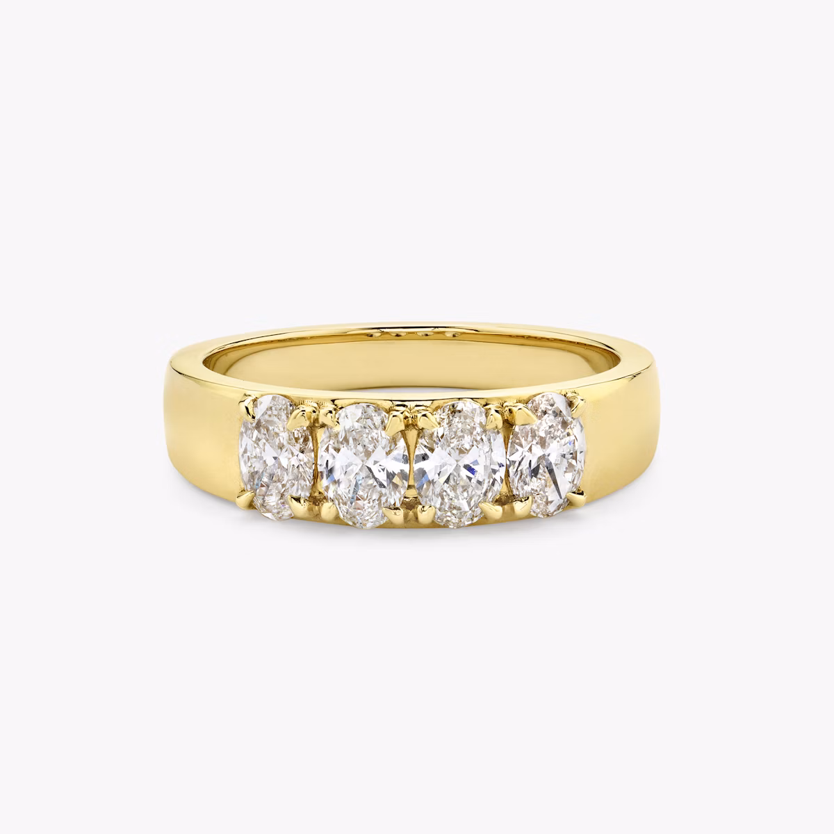 Framed in 14k solid gold, our Diamond Tetrad features a series of four diamonds, balancing symmetry and substance. Each diamond’s facets creates depth and dimension, while an open back gallery draws in light and spotlights clarity.