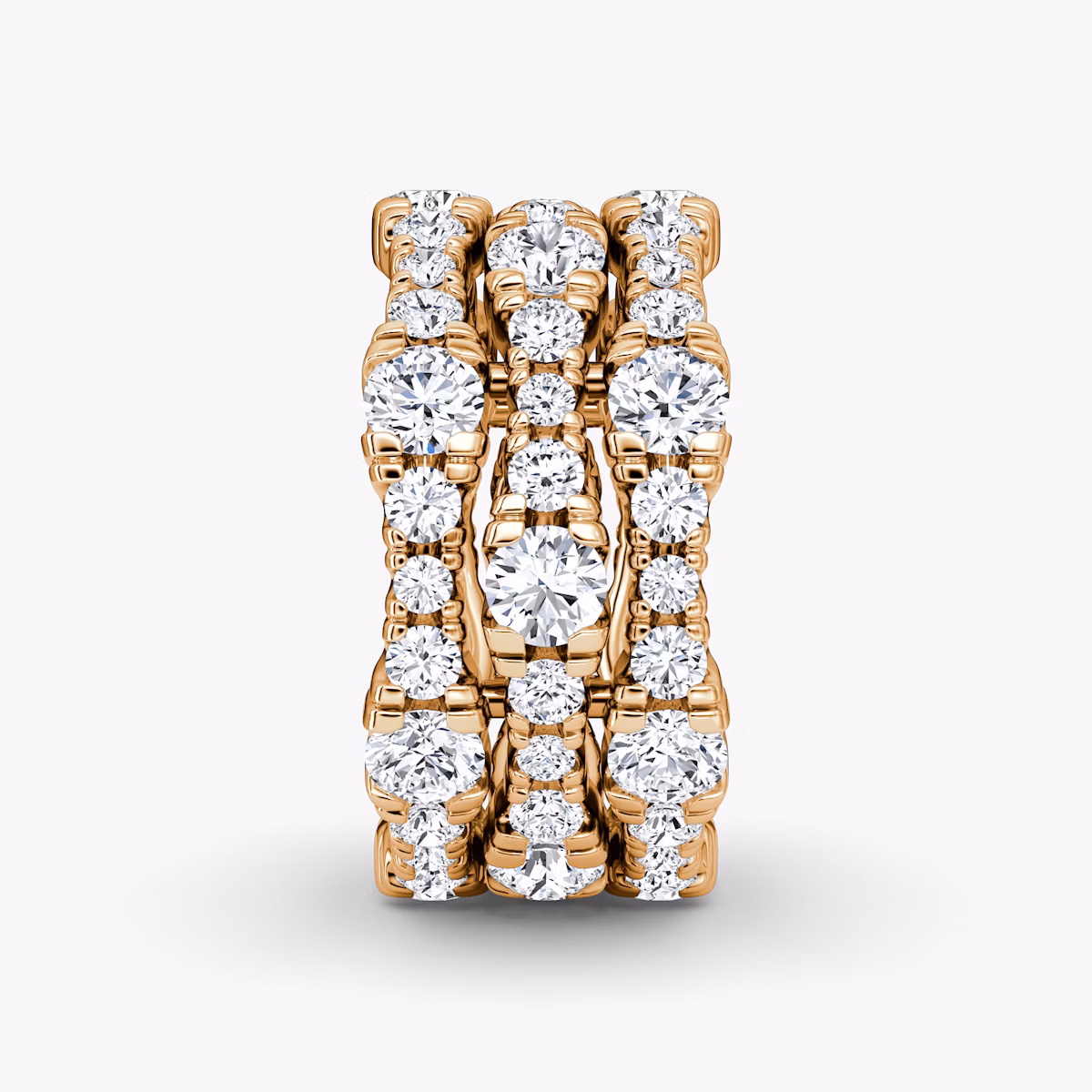 Shimmering layers of Round Brilliant VRAI created diamonds are stacked in this soft yet statement-making design. Select three or five rows in your favorite shade of 14k solid gold for a look that reflects your unique style.