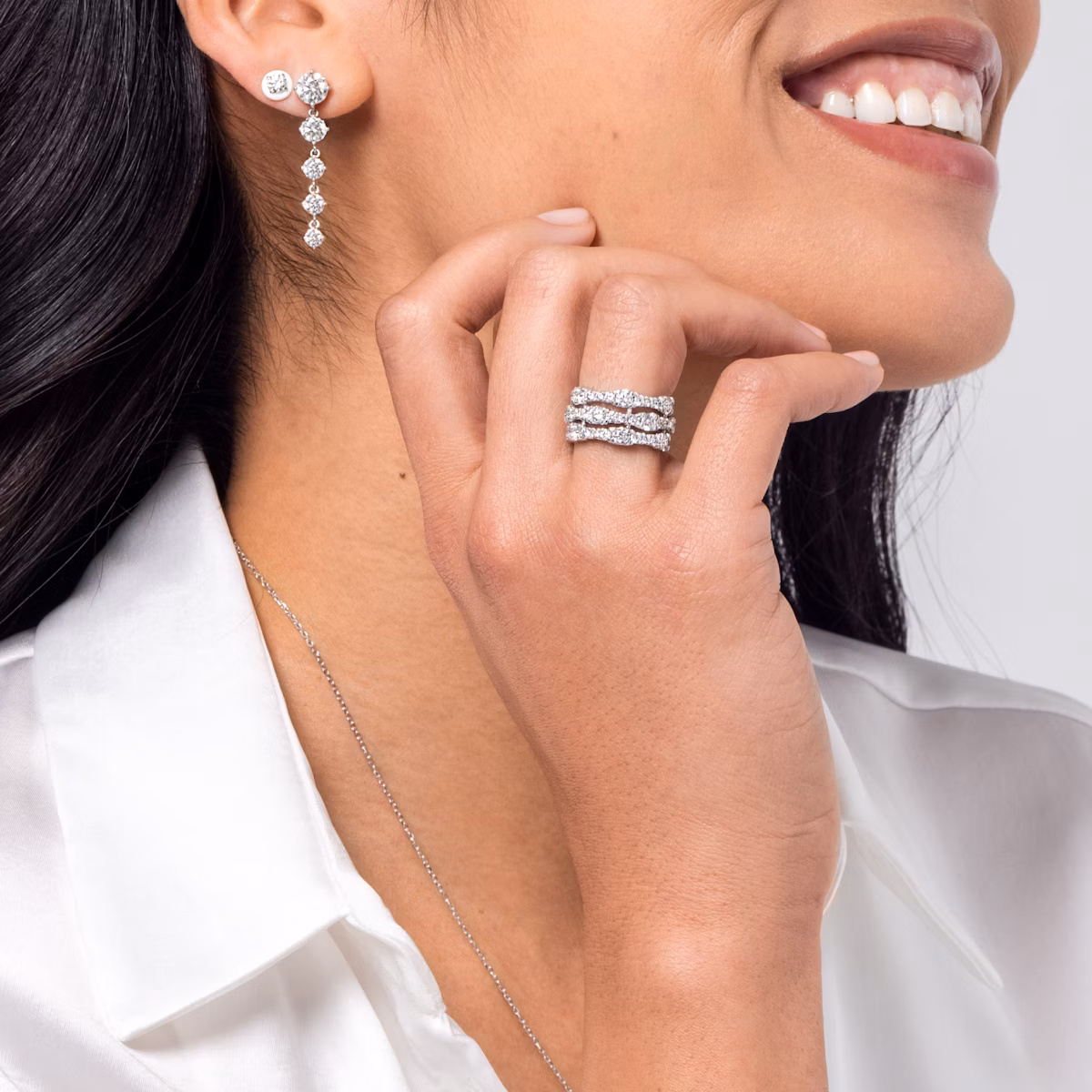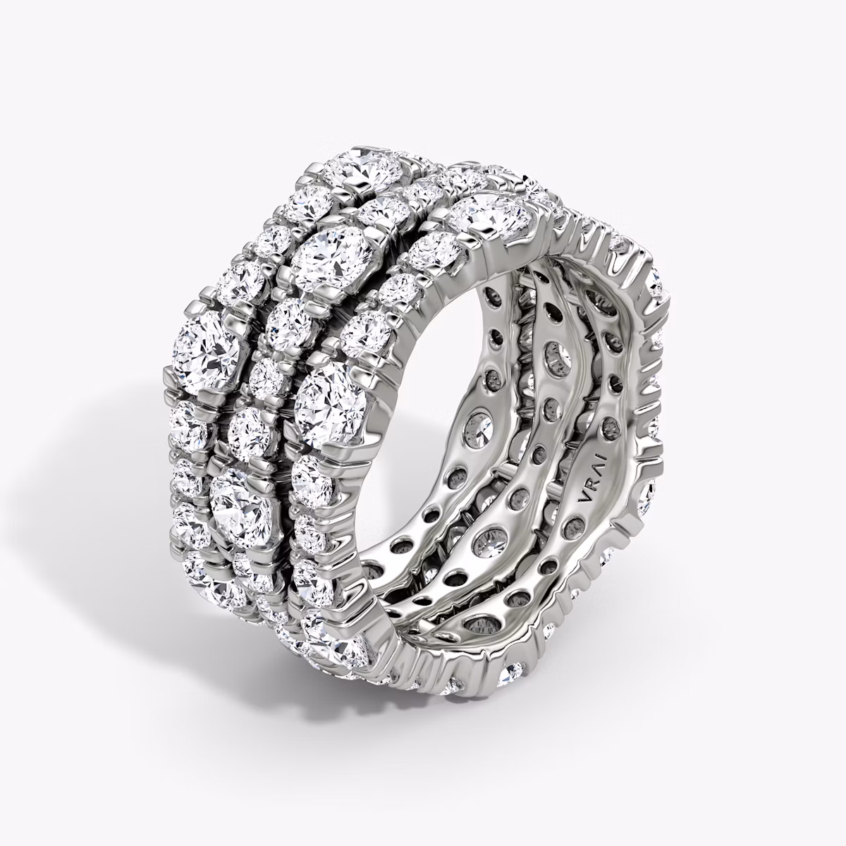 Shimmering layers of Round Brilliant VRAI created diamonds are stacked in this soft yet statement-making design. Select three or five rows in your favorite shade of 14k solid gold for a look that reflects your unique style.