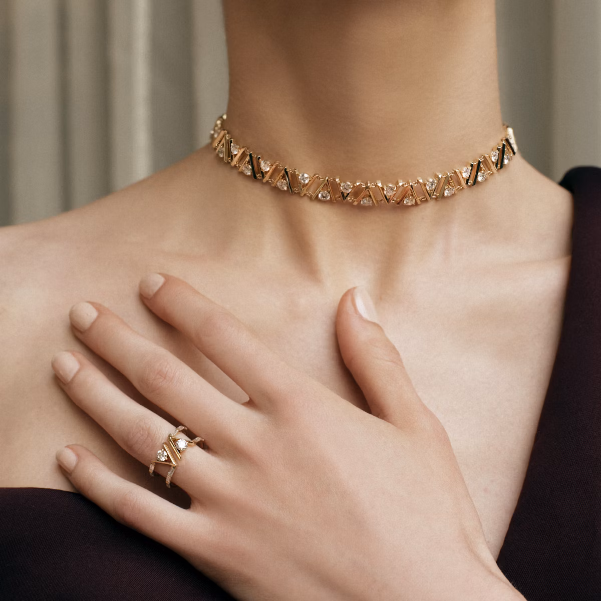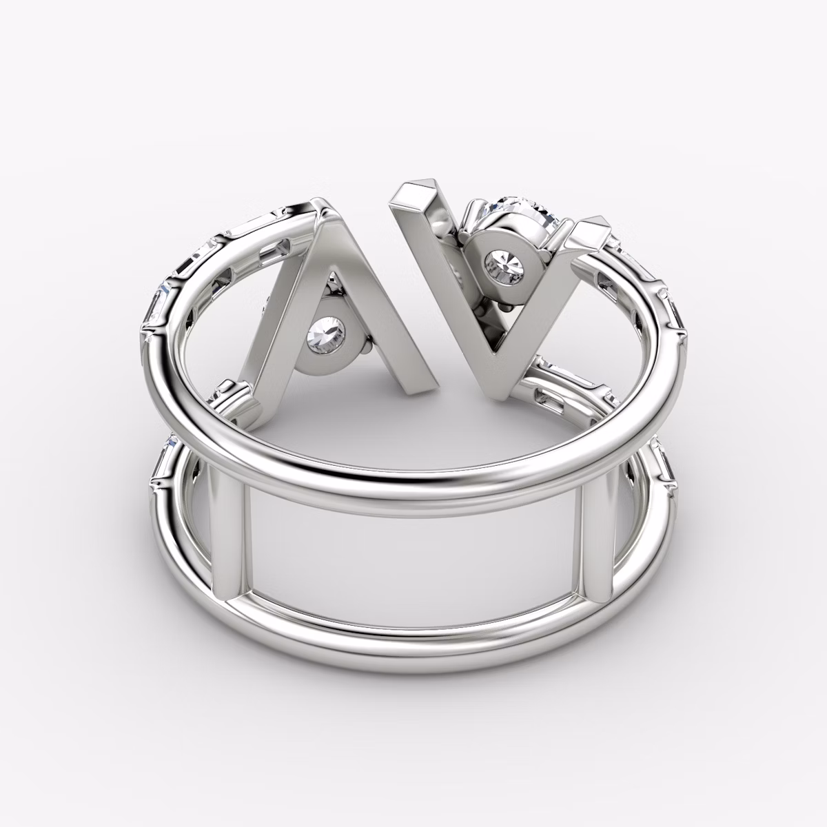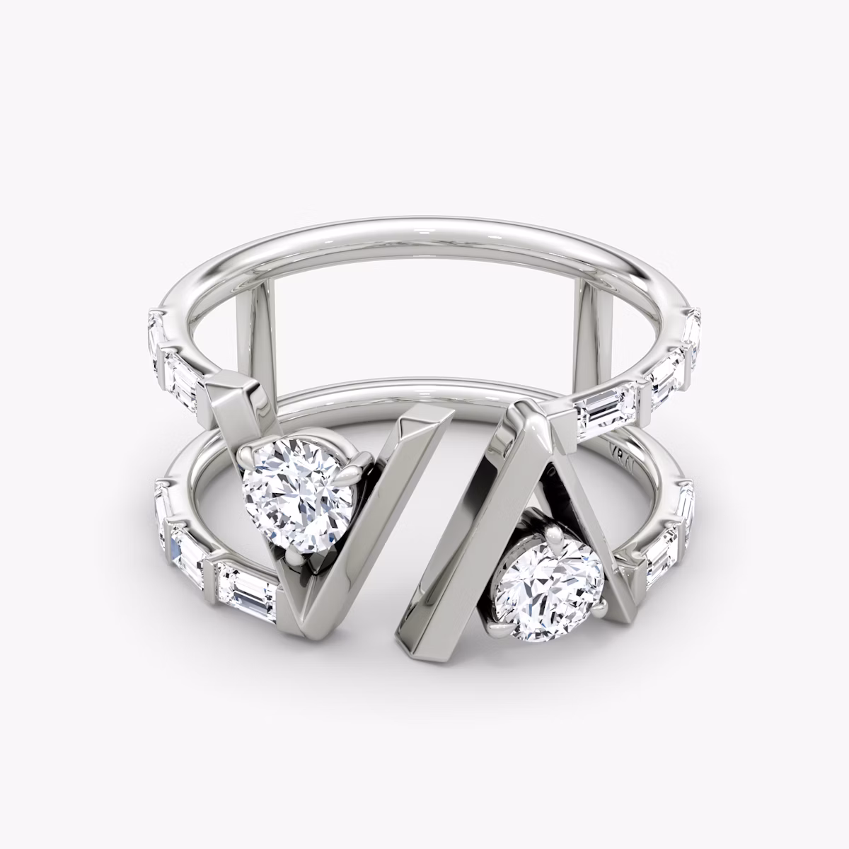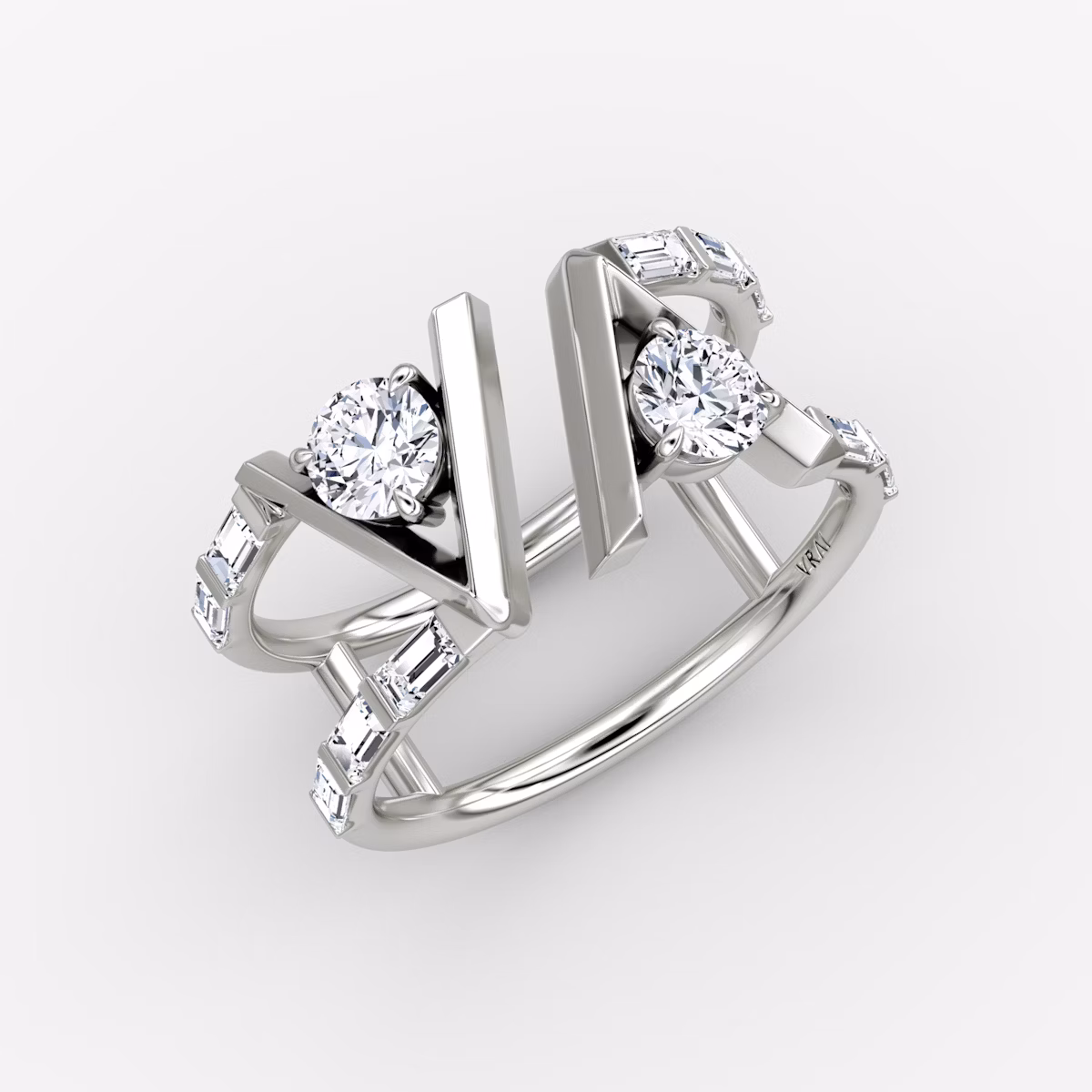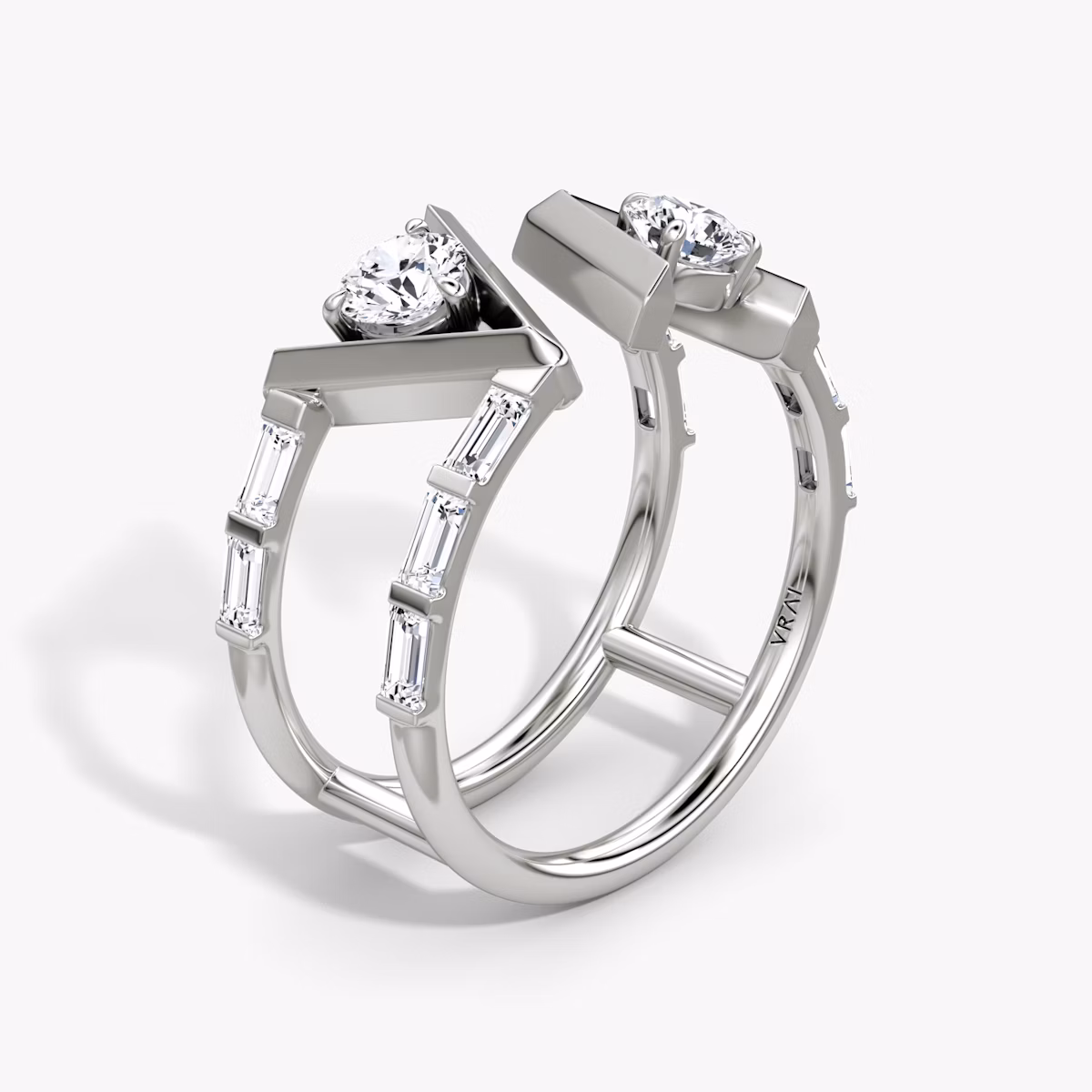 A statement piece made to stand alone or layer, but always set you apart. The VRAI V Double Row Band in 14k solid gold features a duo of knife-edge Vs with matching 3-prong settings that lift and secure Round Brilliant VRAI created diamonds in place. Make this innovative design your own in plain or pavé styles.