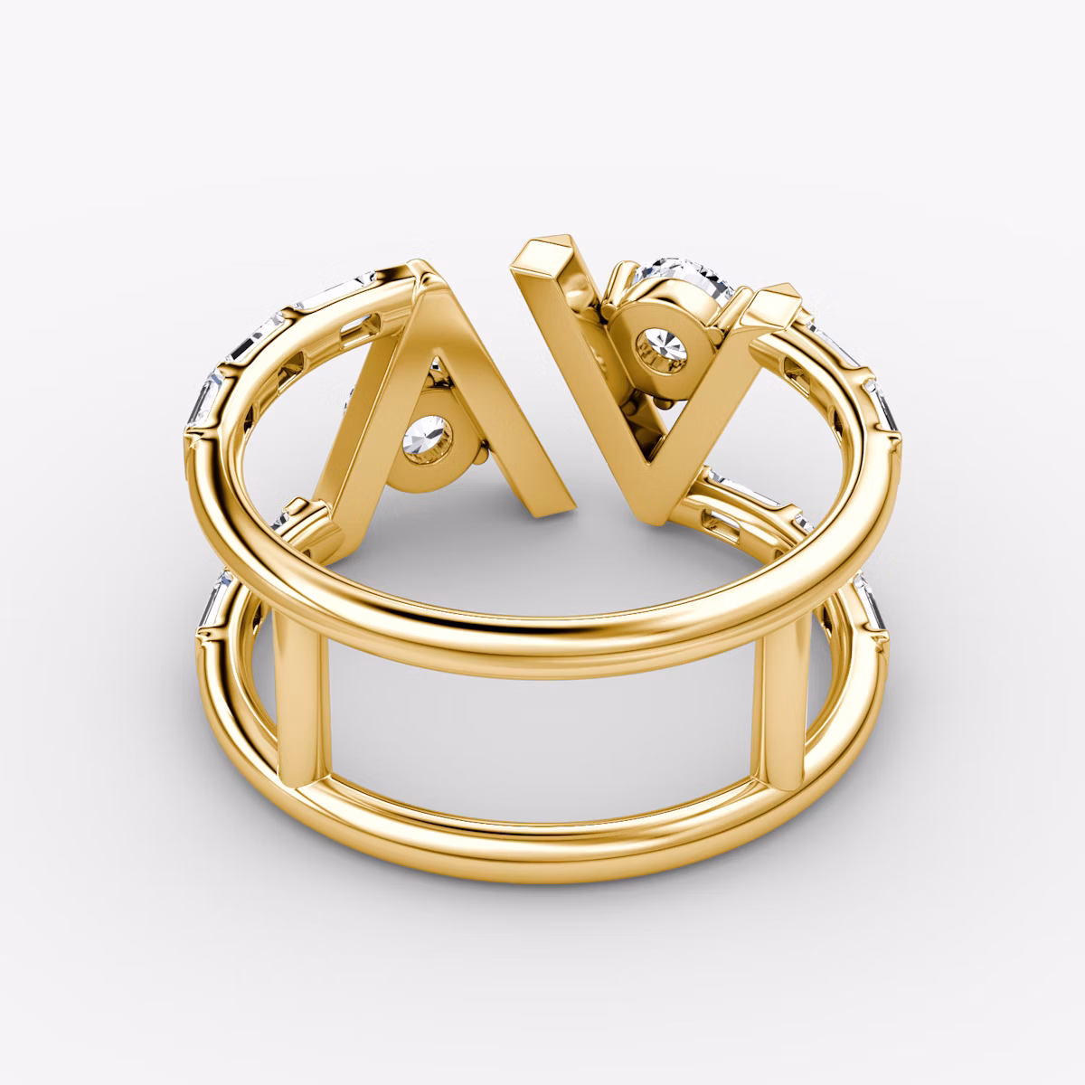 VRAI V Double Row Band | Round Brilliant | 14k | Yellow Gold | bandAccent: Pavé | bandStoneShape: Baguette | diamondSize: original
