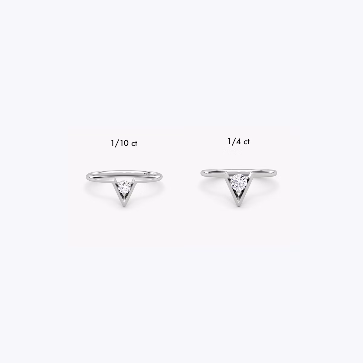 A design that redefines timeless. Inspired by VRAI’s signature motif, the VRAI V Solitaire Ring features a solid gold or sterling silver band and knife-edge V that lifts and secures a Round Brilliant VRAI created diamond in place. Whether solo or stacked, this design can be worn with the V facing either direction.