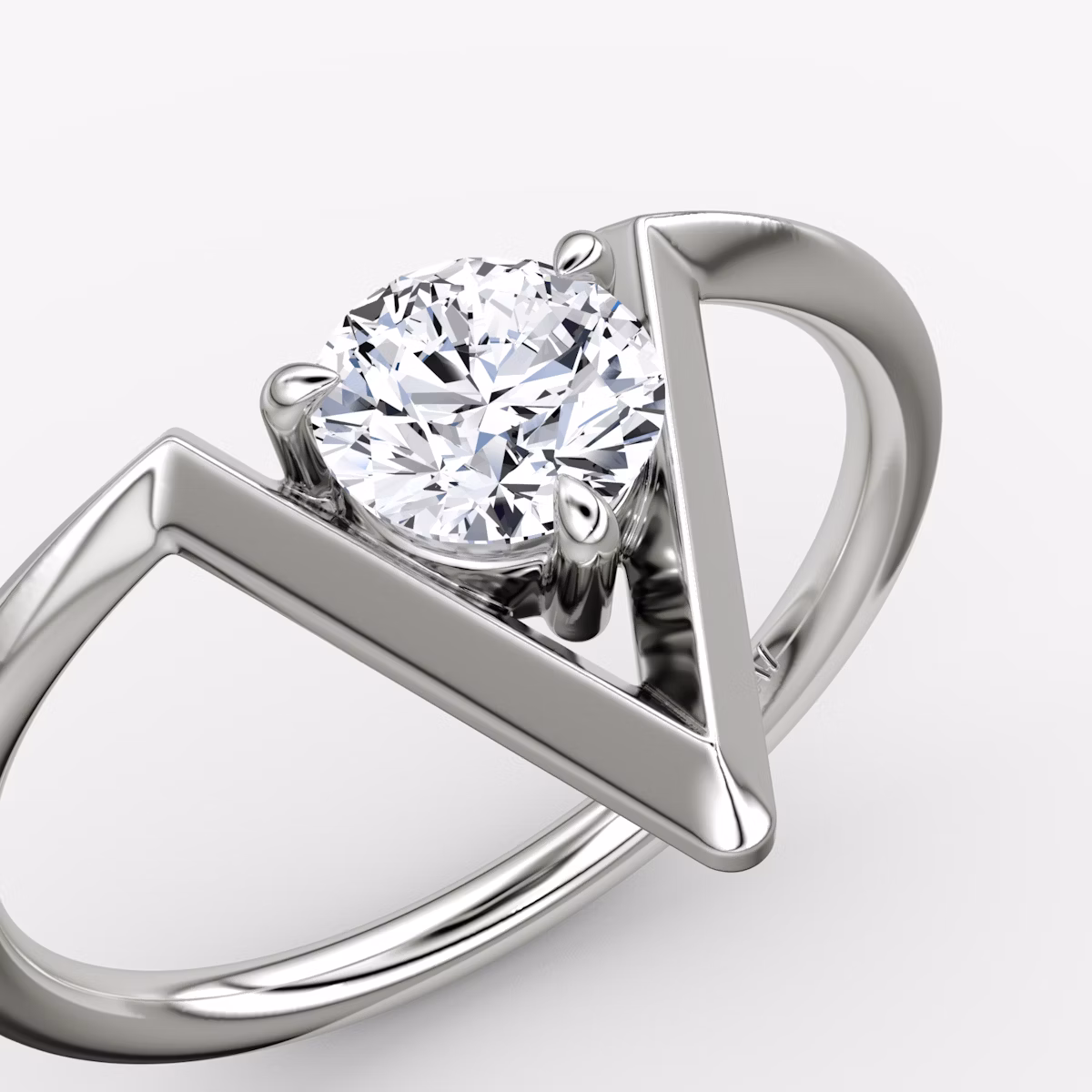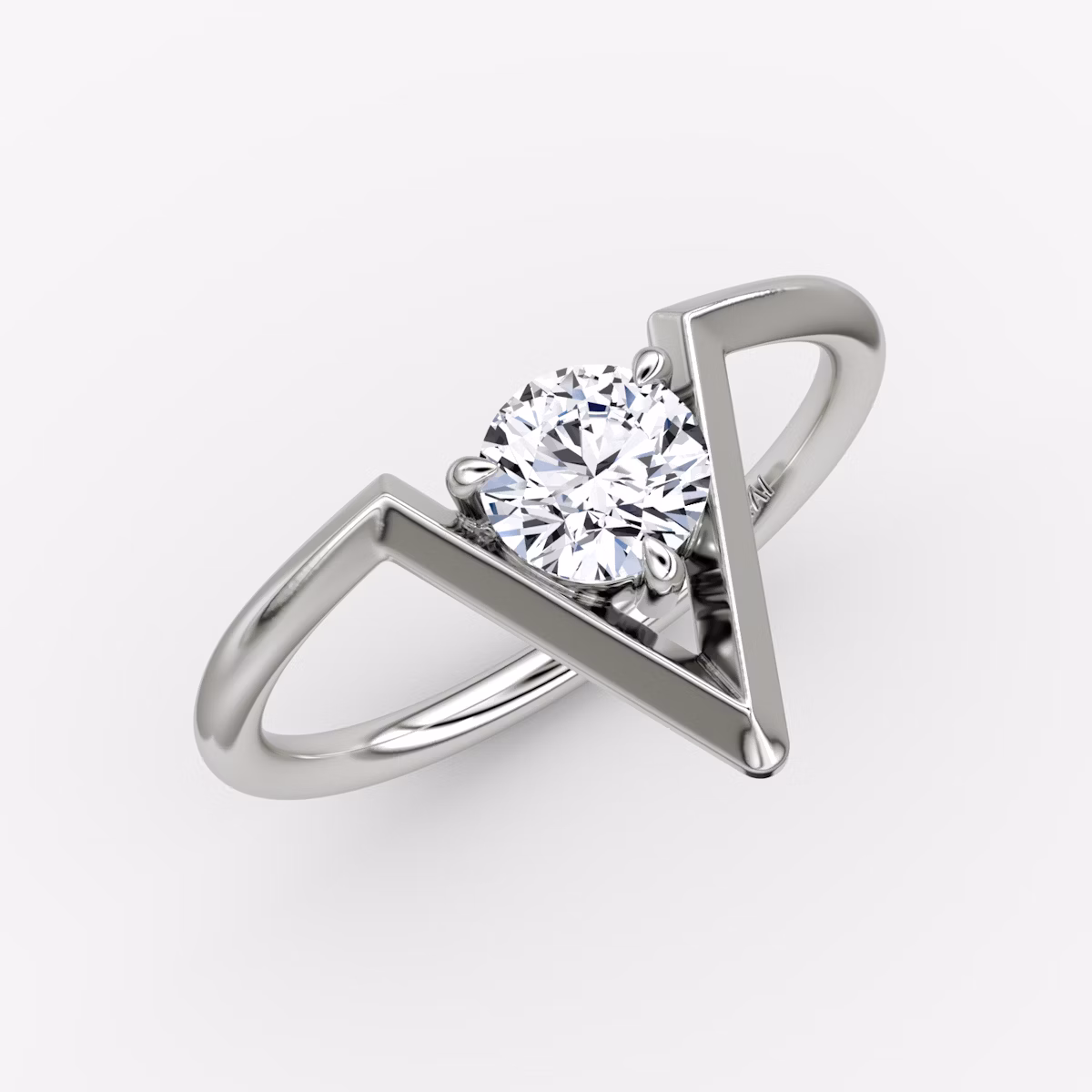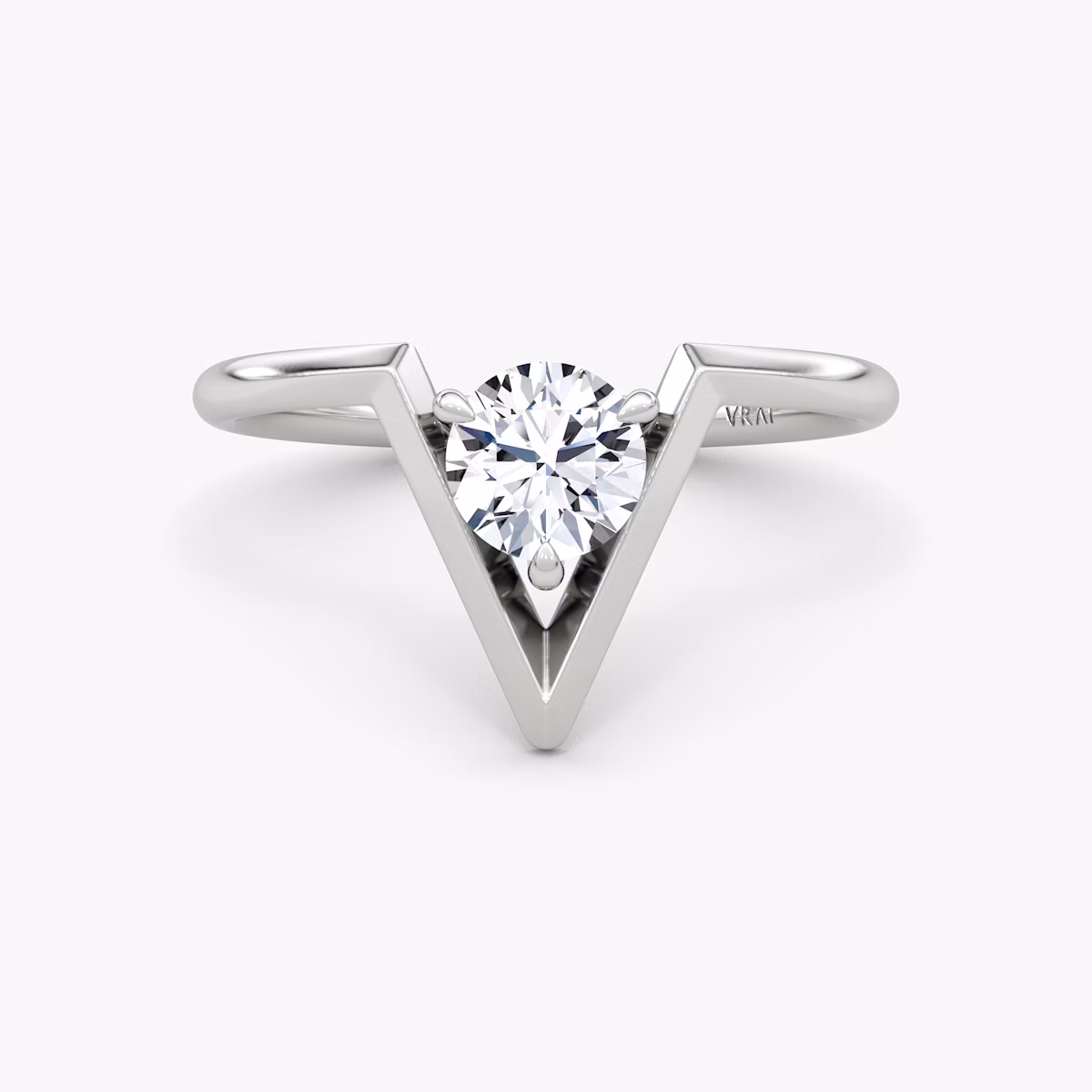 A design that redefines timeless. Inspired by VRAI’s signature motif, the VRAI V Solitaire Ring features a solid gold or sterling silver band and knife-edge V that lifts and secures a Round Brilliant VRAI created diamond in place. Whether solo or stacked, this design can be worn with the V facing either direction.