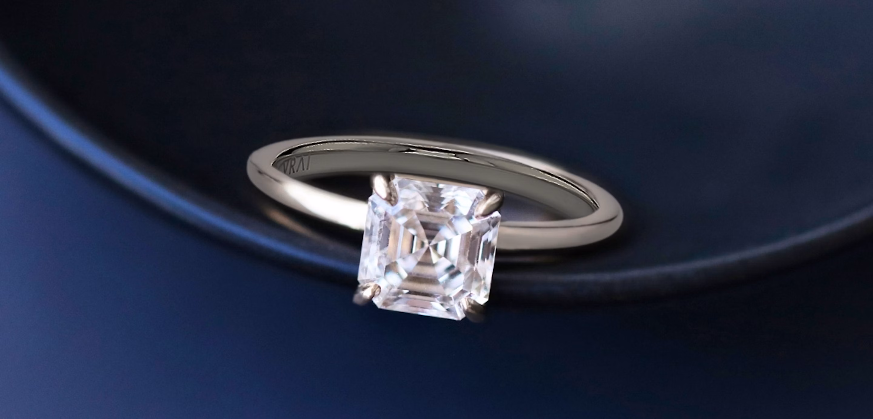 “For Asschers, both color and clarity are fairly important. They are step cuts, which means larger facets that will do less to hide imperfections in terms of clarity.” echoes Grace Taylor, VRAI’s Chief of Sales and CX. “VS1 is generally a good safety range, with VS2s on a case by case basis. Color can be apparent in asschers as well - if you're opting for a white metal or diamonds surrounding the center stone (halo or three stone, for example), sticking with H+ color is advised.”