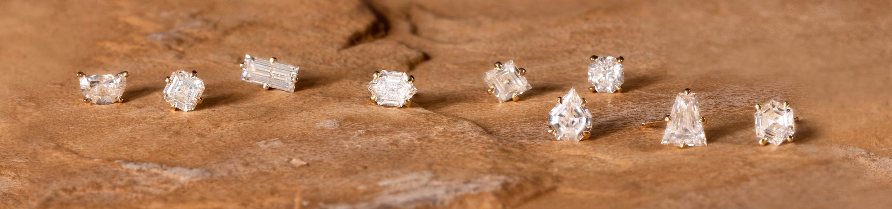 Embodying strength, luster, durability, and light, Shield cut diamonds feature a truly unique outline resembling a shield. Shield cut diamonds appear larger than they are and are commonly featured in dangle earrings and pendants.