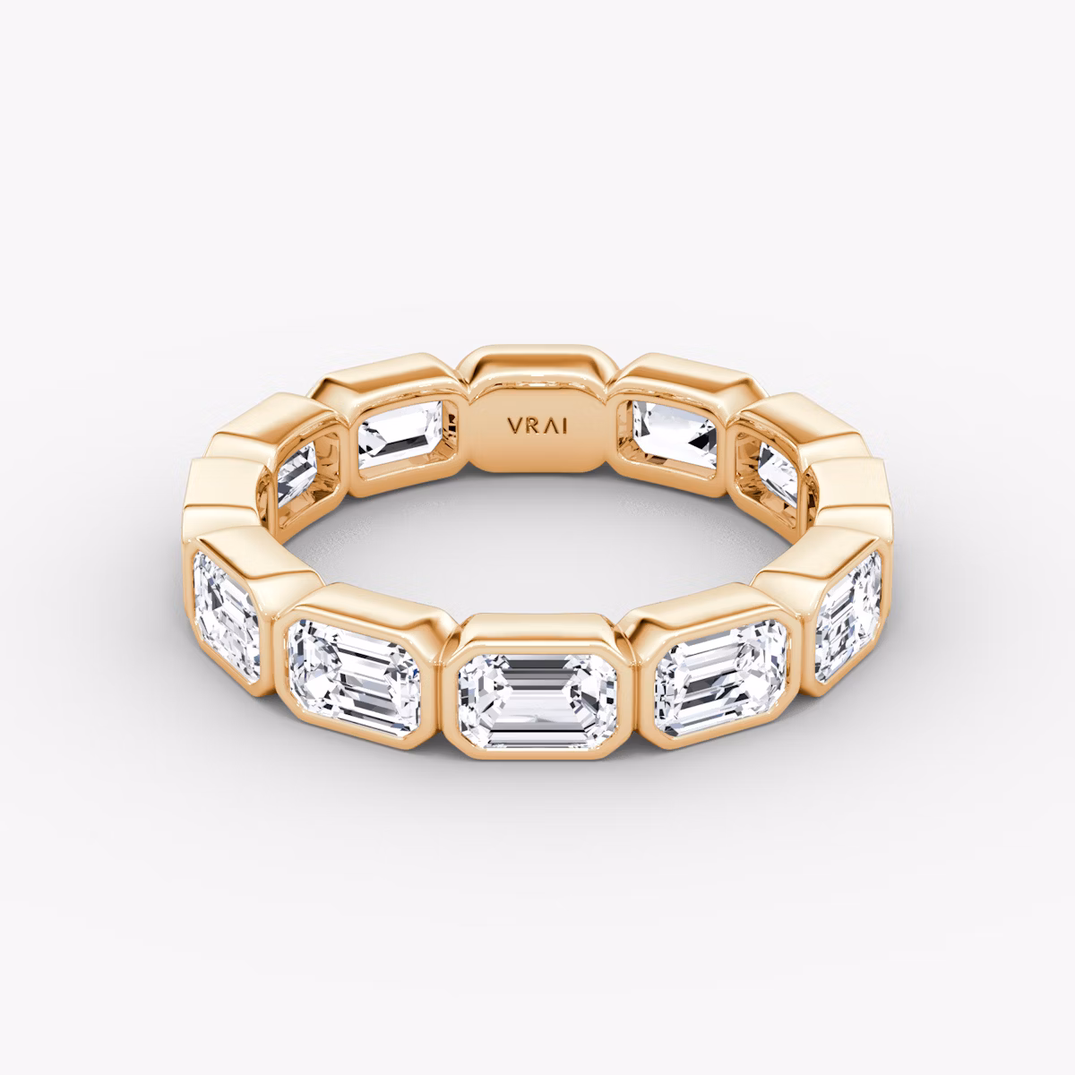 A vintage-inspired twist with modern appeal that is timelessly elegant. A platinum or solid gold bezel setting outlines an endless array of VRAI created diamonds in a design made to commemorate an eternity of love.