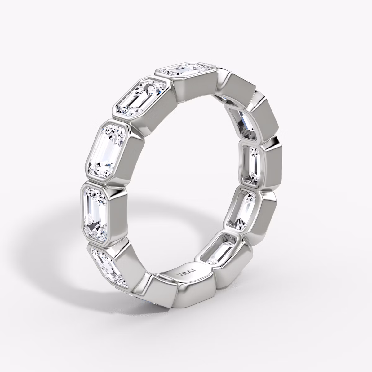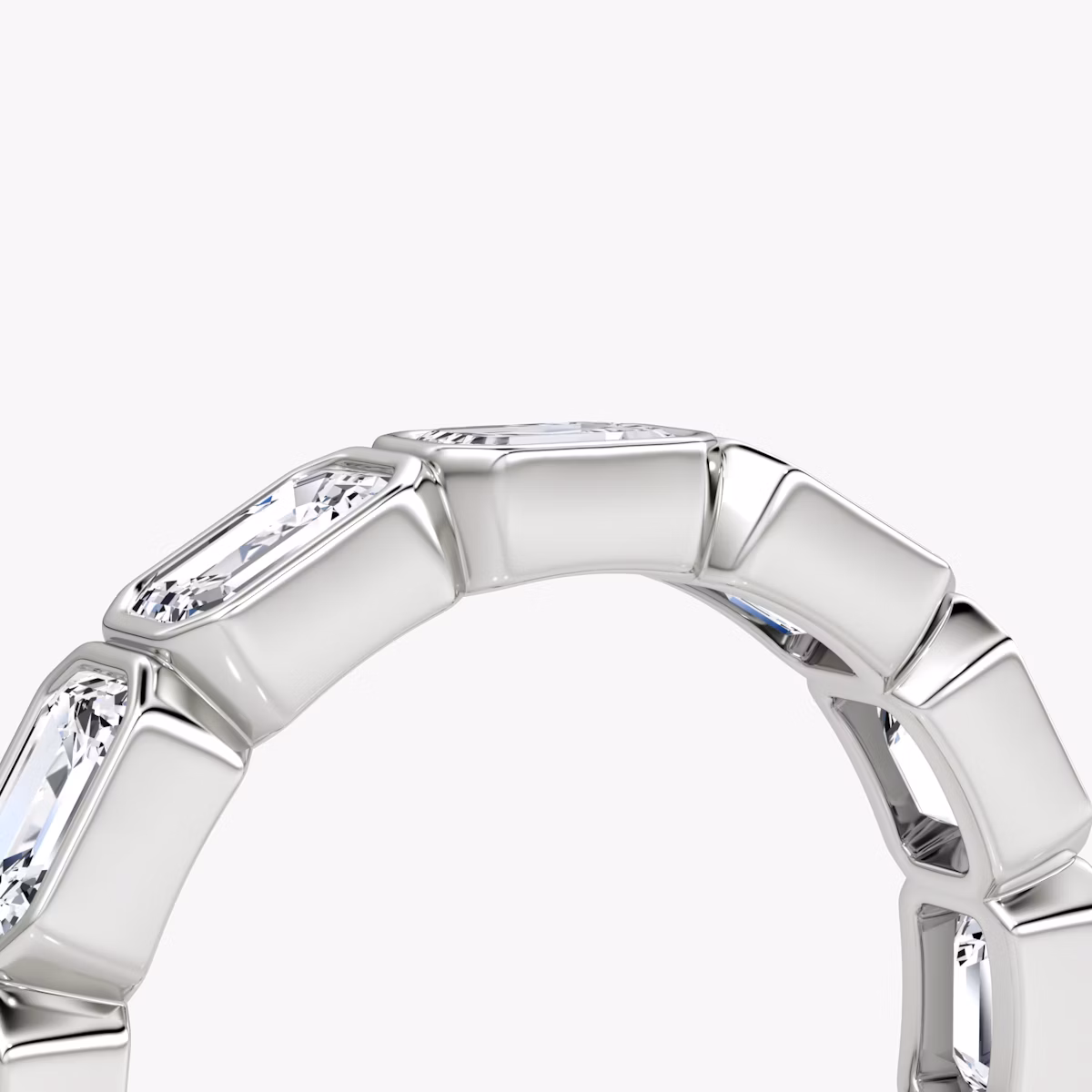 A vintage-inspired twist with modern appeal that is timelessly elegant. A platinum or solid gold bezel setting outlines an endless array of VRAI created diamonds in a design made to commemorate an eternity of love.