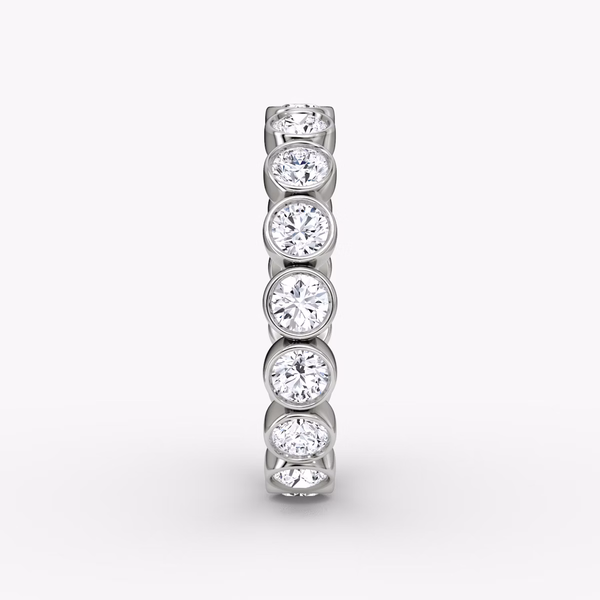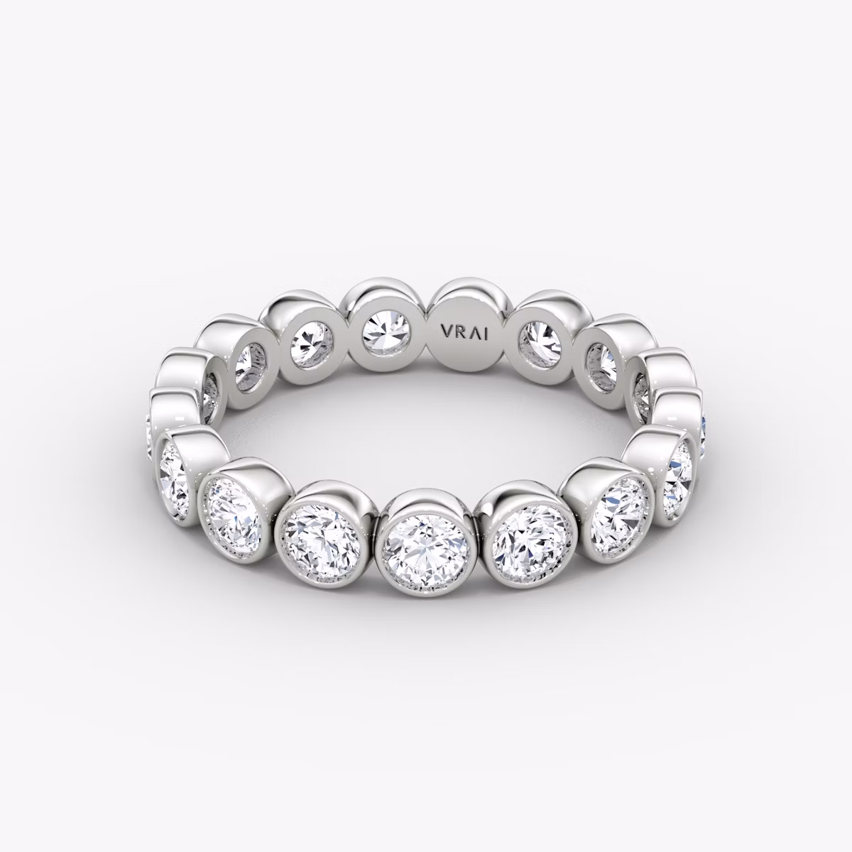 A vintage-inspired twist with modern appeal that is timelessly elegant. A platinum or solid gold bezel setting outlines an endless array of VRAI created diamonds in a design made to commemorate an eternity of love.