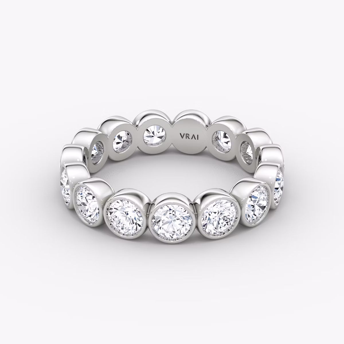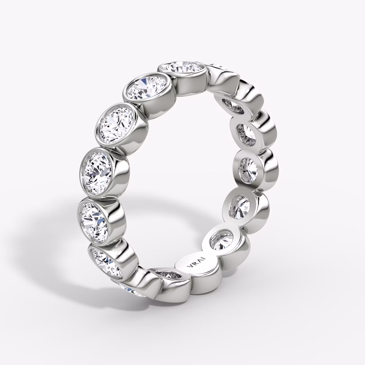 A vintage-inspired twist with modern appeal that is timelessly elegant. A platinum or solid gold bezel setting outlines an endless array of VRAI created diamonds in a design made to commemorate an eternity of love.