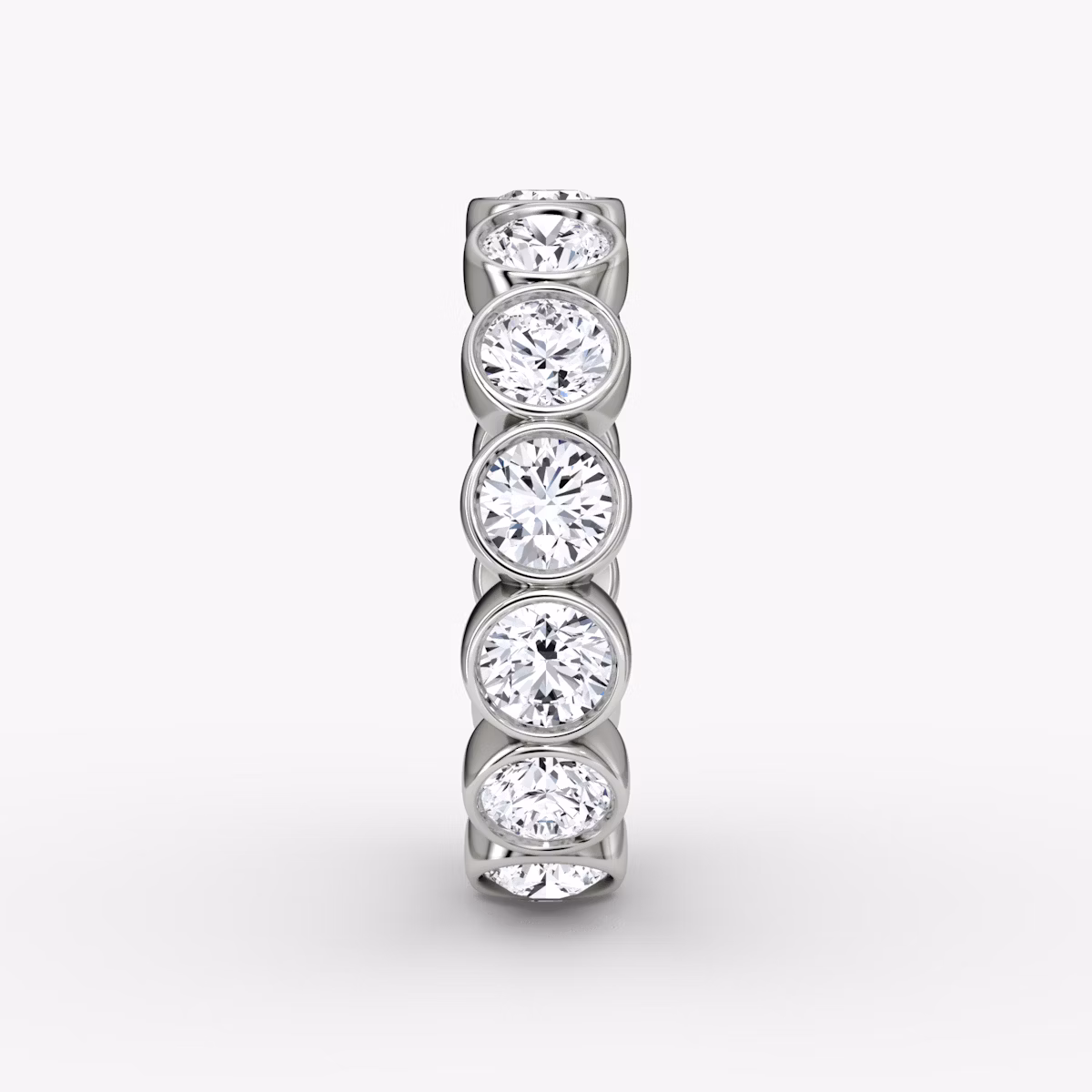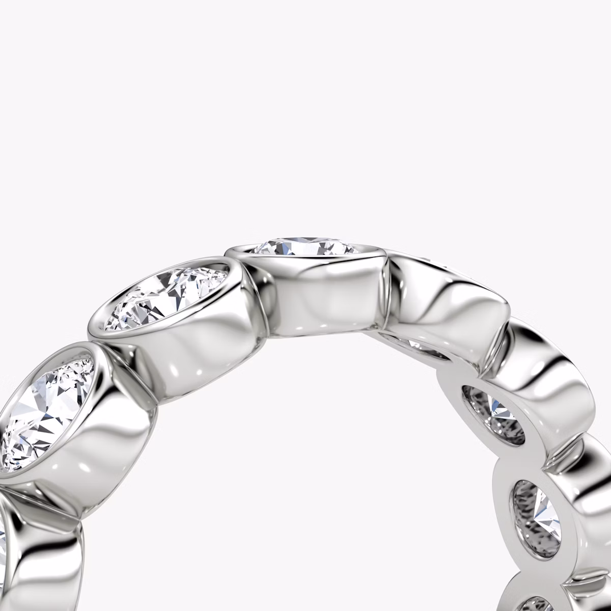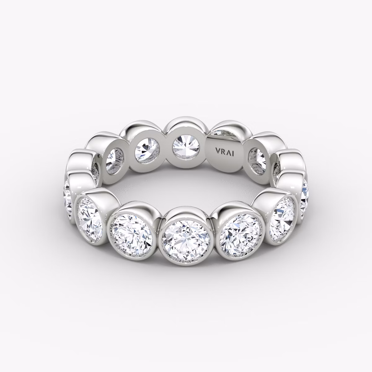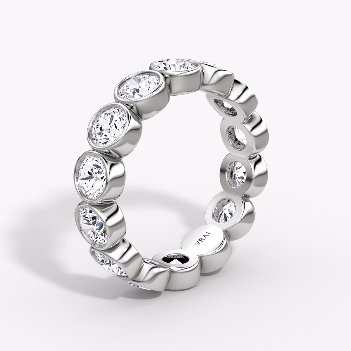 A vintage-inspired twist with modern appeal that is timelessly elegant. A platinum or solid gold bezel setting outlines an endless array of VRAI created diamonds in a design made to commemorate an eternity of love.