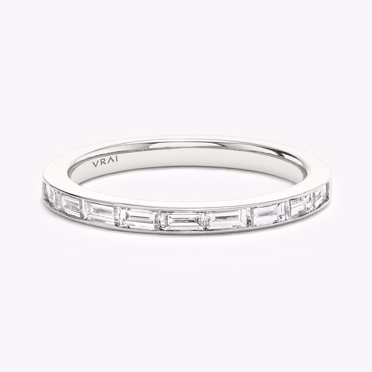 Commemorate your love to another or to yourself with a band that is a daily reminder of your devotion. A series of VRAI created Round Brilliant or Baguette shaped diamonds are secured inside a platinum or solid gold channel set band, creating a look of enduring sophistication.