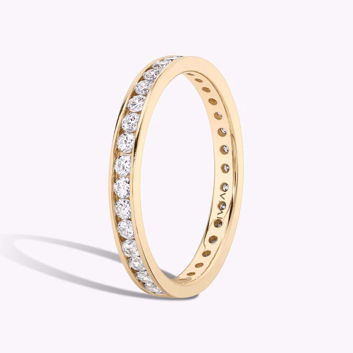 Commemorate your love to another or to yourself with a band that is a daily reminder of your devotion. A series of VRAI created Round Brilliant or Baguette shaped diamonds are secured inside a platinum or solid gold channel set band, creating a look of enduring sophistication.