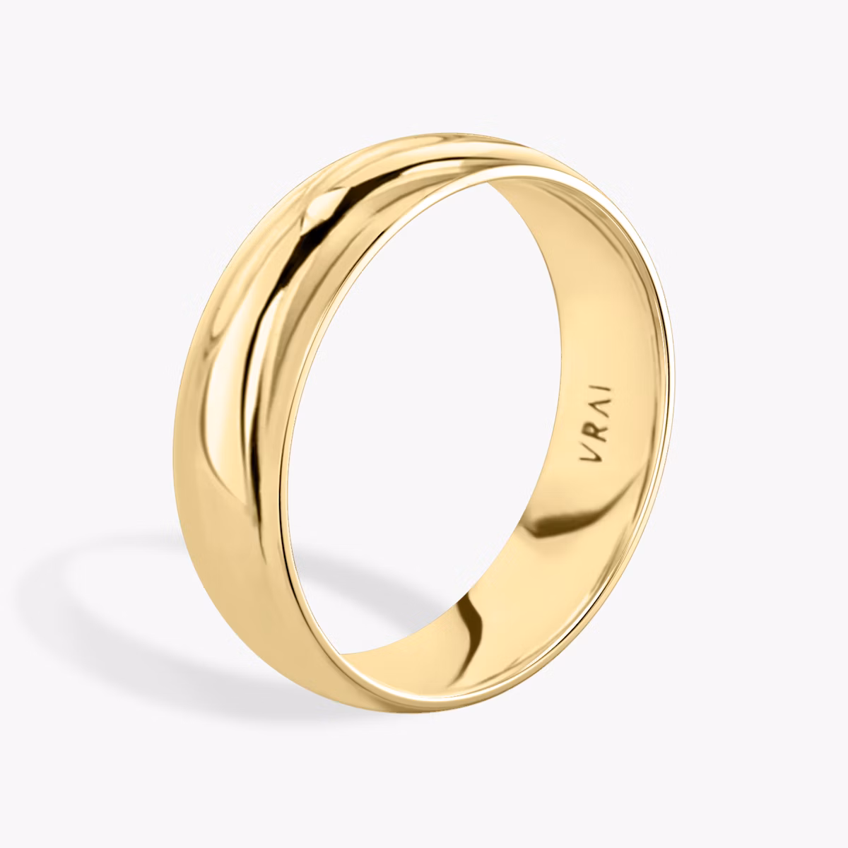Our classic signature band, the Round is a timeless symbol of love and commitment. A semi-rounded polished surface gives this comfort-fit band a substantial appearance. Perfect for wearing solo or paired with your engagement ring to enhance the brilliance of your VRAI created diamond.