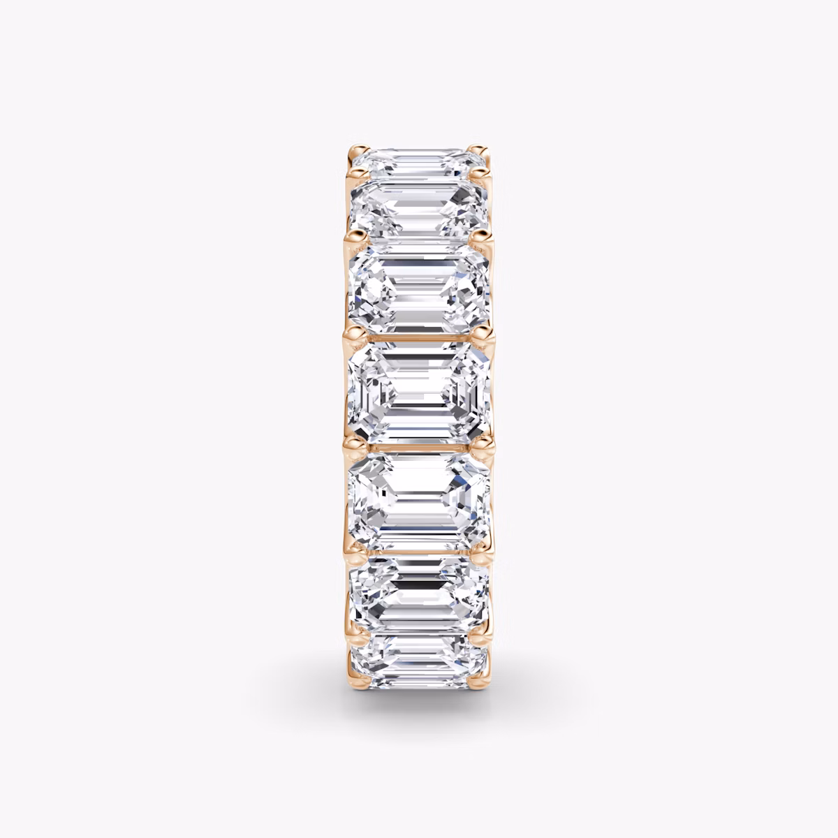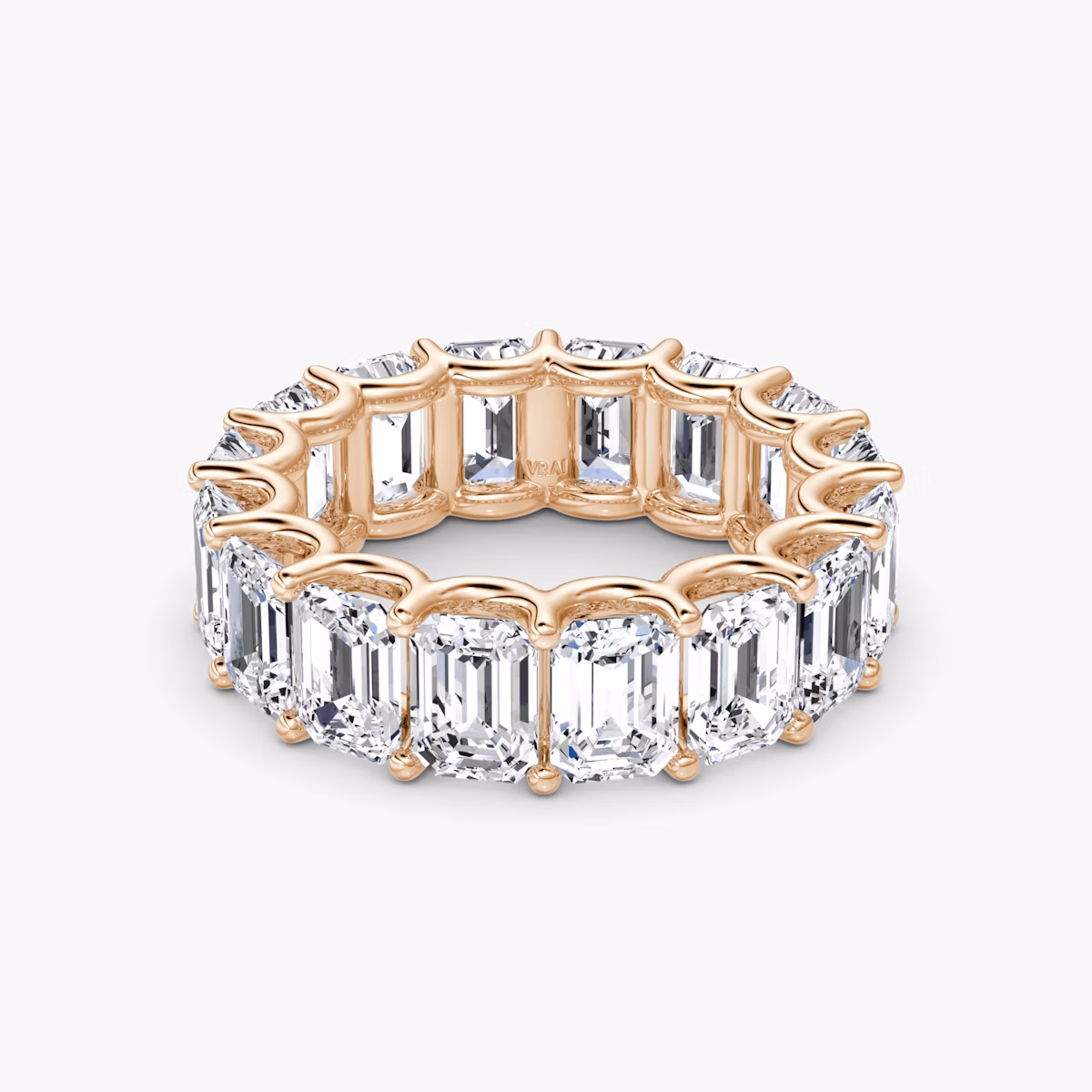 All-encompassing love. Our Eternity band fully embodies the strength of your commitment with a platinum or solid gold band featuring your chosen VRAI created diamond shape. The minimal u-prong setting is designed to draw in the light so each diamond shines bright. Commemorate an eternity of love and union with a wedding band designed to last a lifetime. Choose between a half or full VRAI created diamond eternity band.