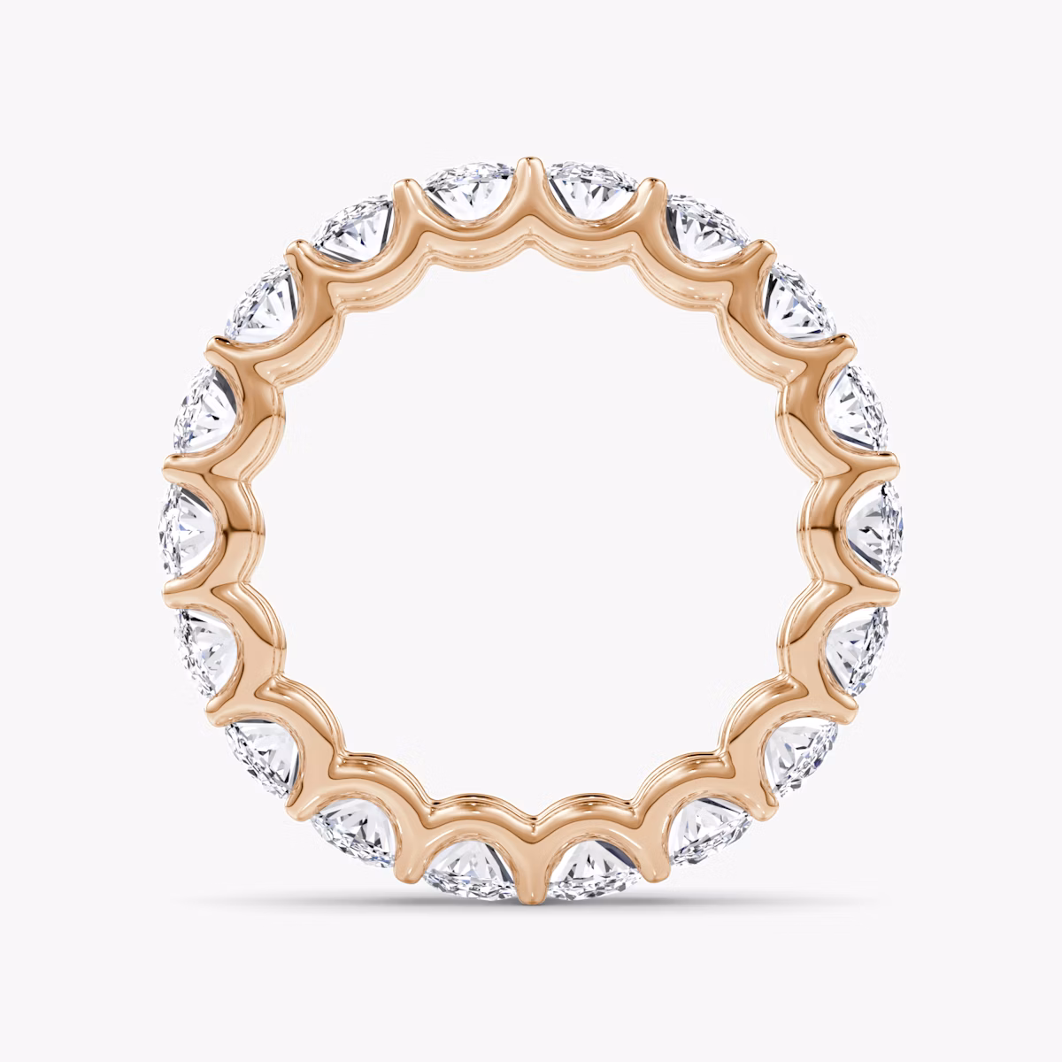 All-encompassing love. Our Eternity band fully embodies the strength of your commitment with a platinum or solid gold band featuring your chosen VRAI created diamond shape. The minimal u-prong setting is designed to draw in the light so each diamond shines bright. Commemorate an eternity of love and union with a wedding band designed to last a lifetime. Choose between a half or full VRAI created diamond eternity band.