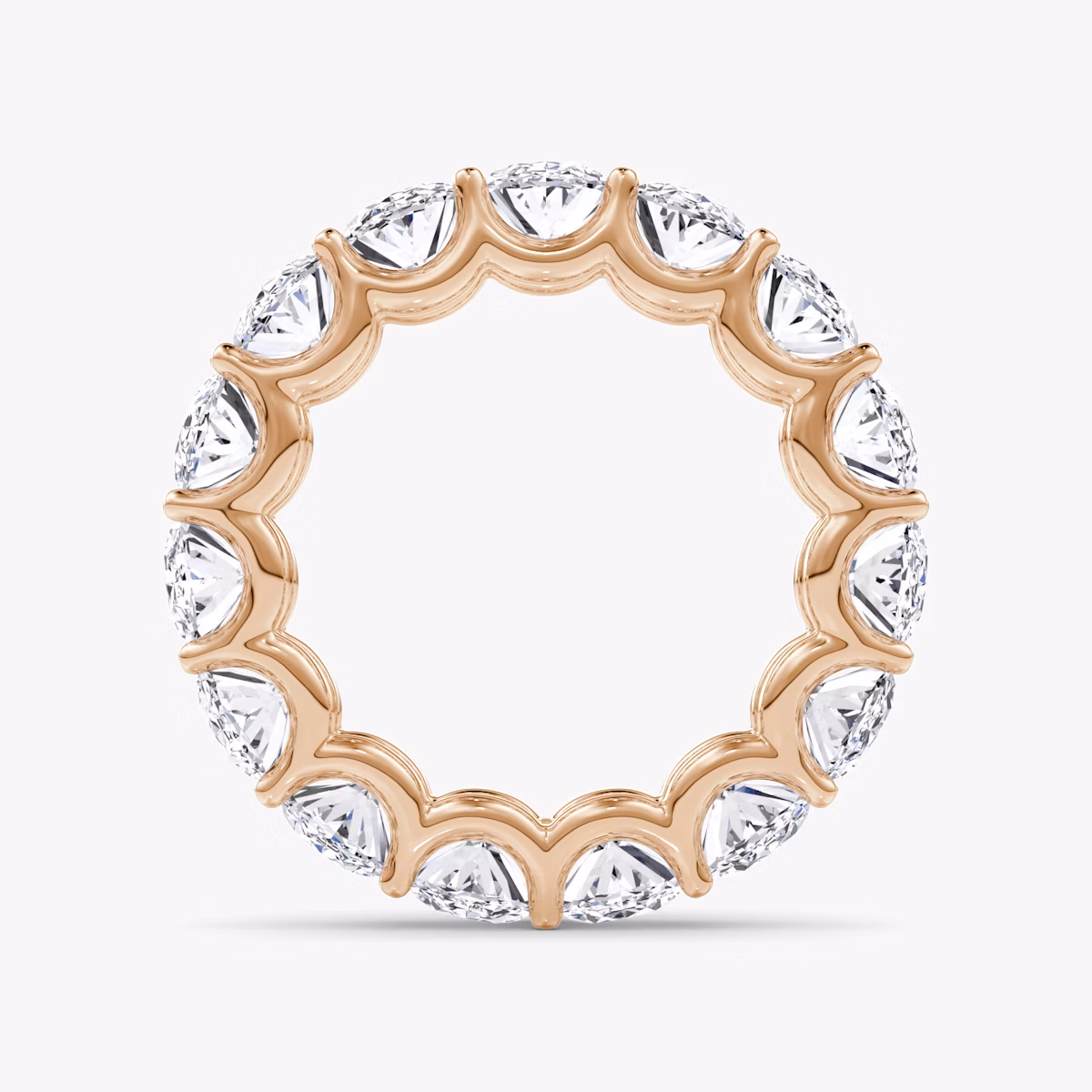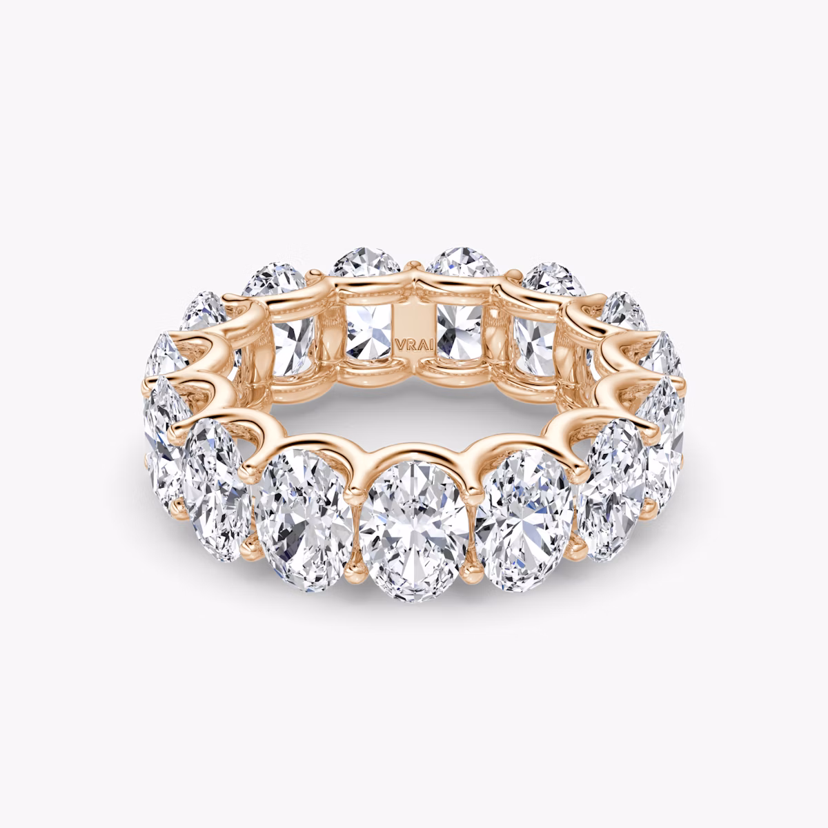 All-encompassing love. Our Eternity band fully embodies the strength of your commitment with a platinum or solid gold band featuring your chosen VRAI created diamond shape. The minimal u-prong setting is designed to draw in the light so each diamond shines bright. Commemorate an eternity of love and union with a wedding band designed to last a lifetime. Choose between a half or full VRAI created diamond eternity band.