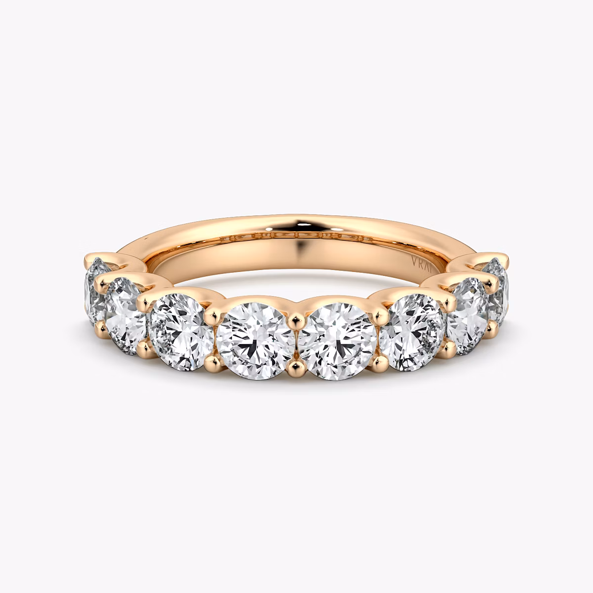 Let your love shine forever with the dazzling and symbolic Eternity Band. The Half Round Eternity Band provides a slightly more subdued, but equally romantic, alternative to our classic design. Choose between 2 or 3 carats of VRAI created Round Brilliant cut diamonds that encircle half of a platinum or solid gold band. This wedding band design beautifully represents the strength of your union and your never-ending love.