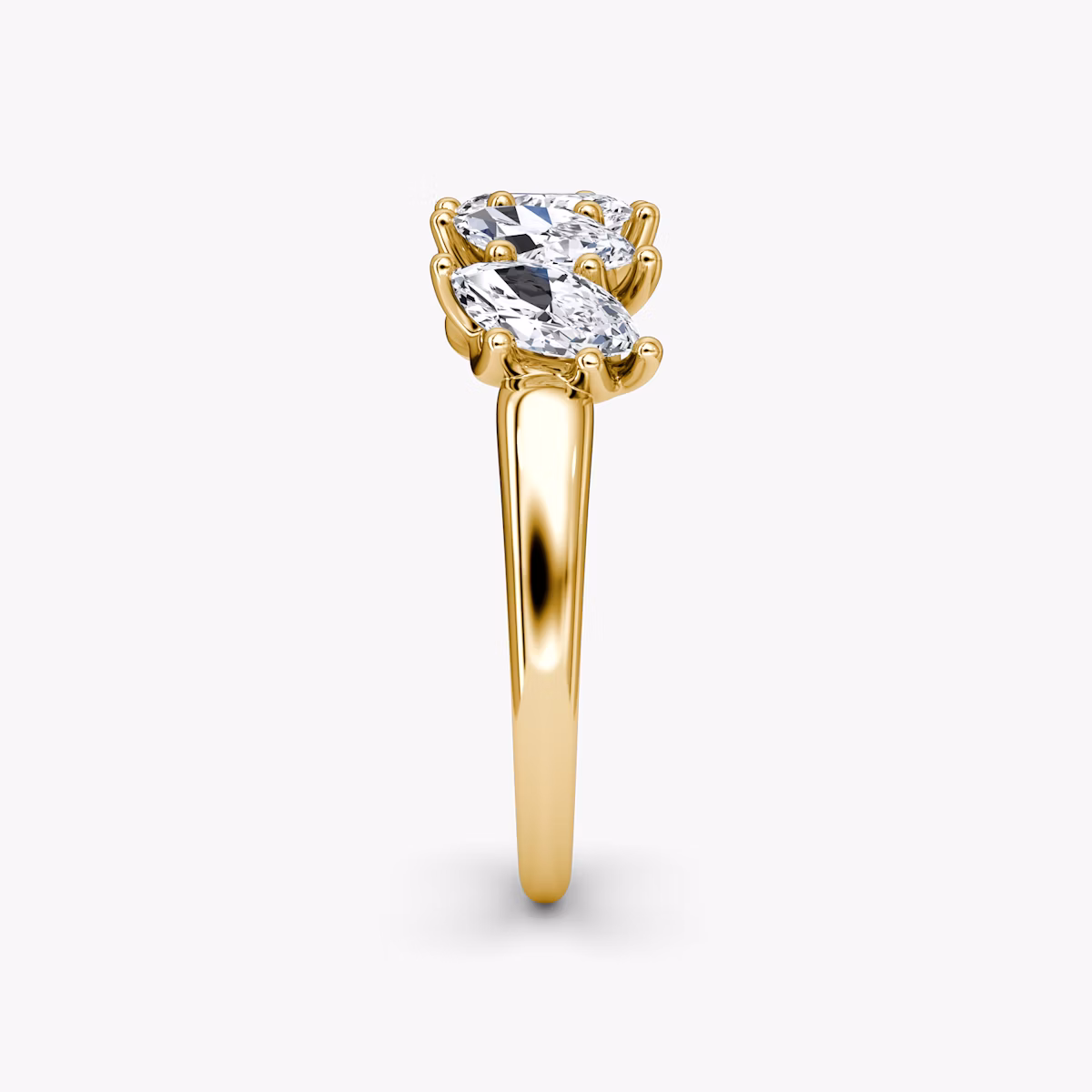 A dazzling row of five VRAI created diamonds are secured atop a solid gold or platinum setting, creating a bold display of brilliance and symmetry. Highlighting one of six different diamond shapes, the substantial and sophisticated Five Stone band symbolizes the memories, milestones, and moments worth celebrating.