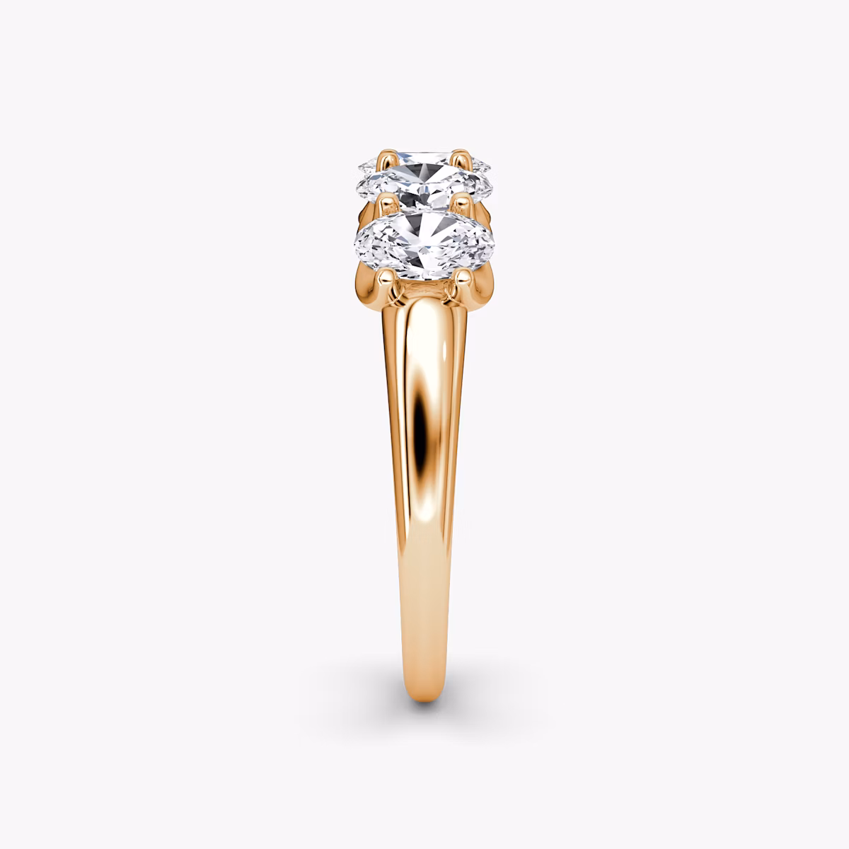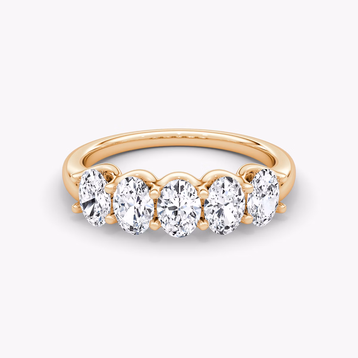A dazzling row of five VRAI created diamonds are secured atop a solid gold or platinum setting, creating a bold display of brilliance and symmetry. Highlighting one of six different diamond shapes, the substantial and sophisticated Five Stone band symbolizes the memories, milestones, and moments worth celebrating.
