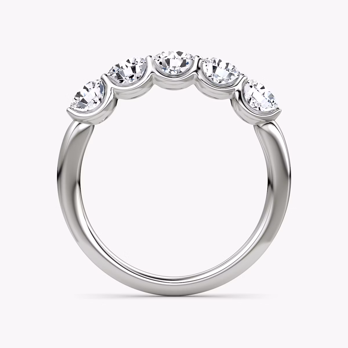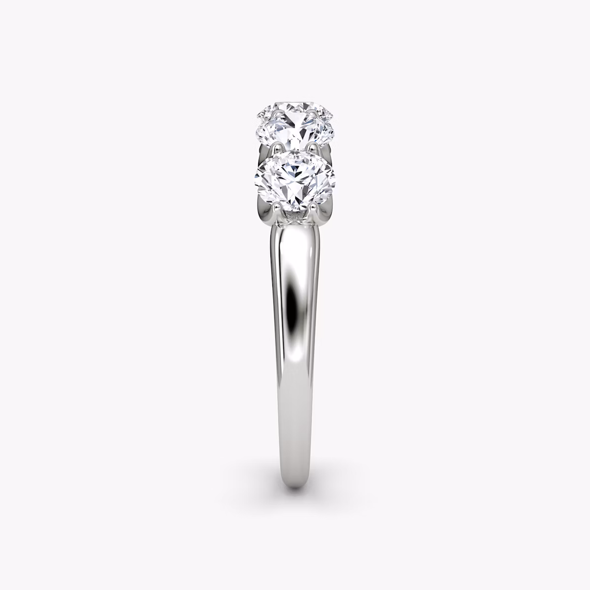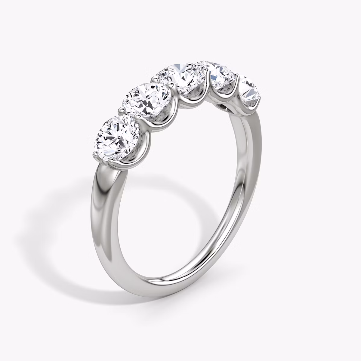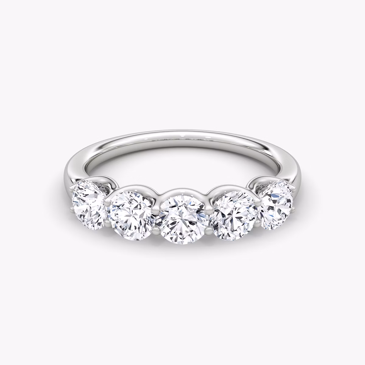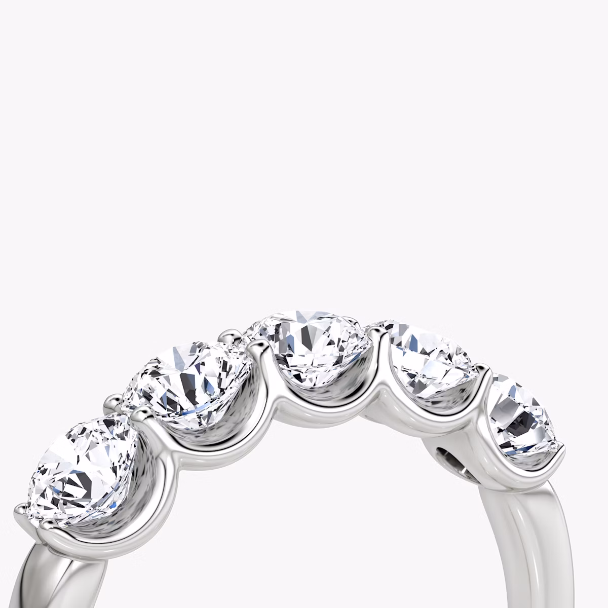 A dazzling row of five VRAI created diamonds are secured atop a solid gold or platinum setting, creating a bold display of brilliance and symmetry. Highlighting one of six different diamond shapes, the substantial and sophisticated Five Stone band symbolizes the memories, milestones, and moments worth celebrating.