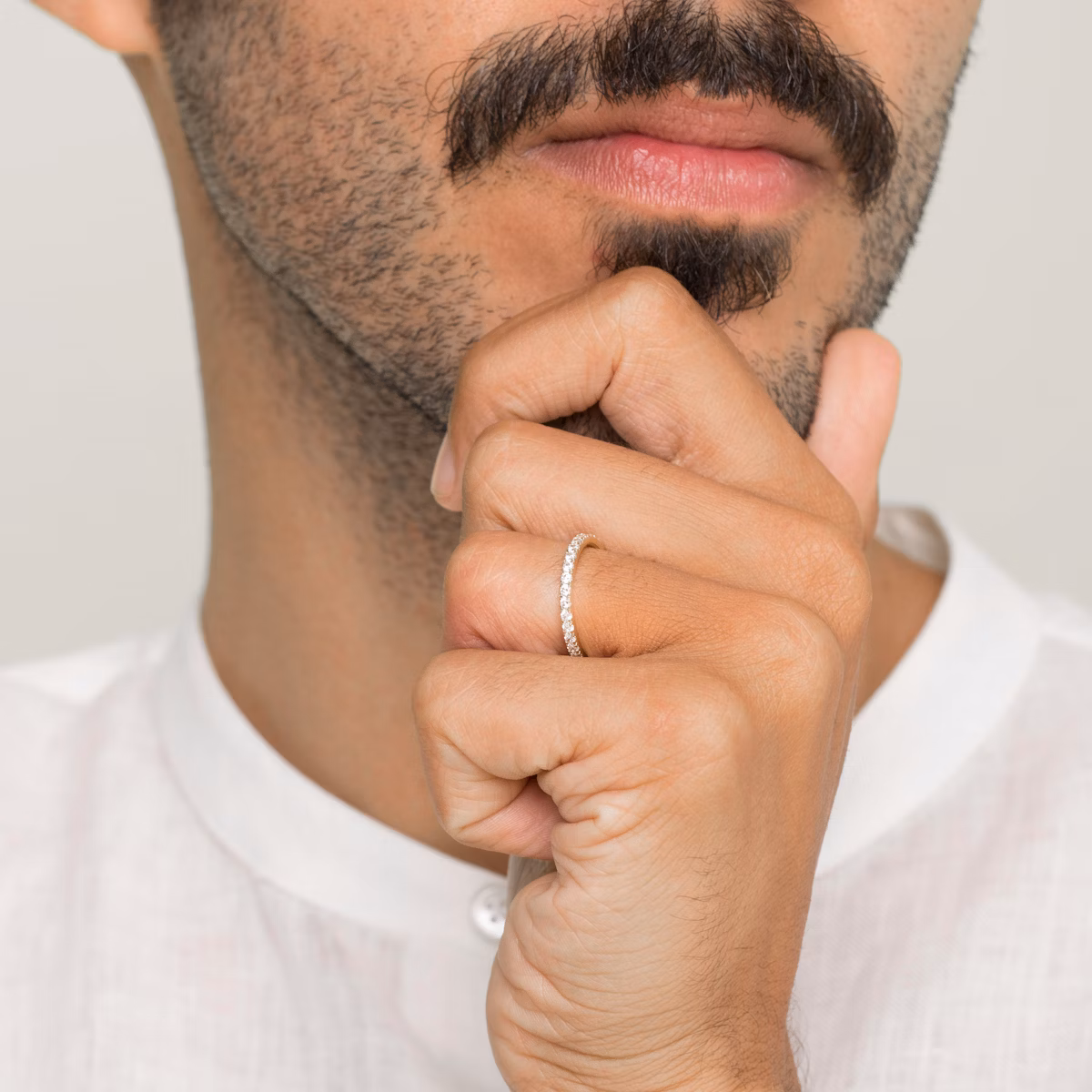The Infinity Band is our refined rendition of a timeless style. A sparkling series of individually handset pavé diamonds decorate the entire band in a modern u-cut setting. Perfect for wearing solo, layered with your favorite stack or paired with your engagement ring to enhance the brilliance of your diamond. Proudly made with created diamonds for a more sustainable future.