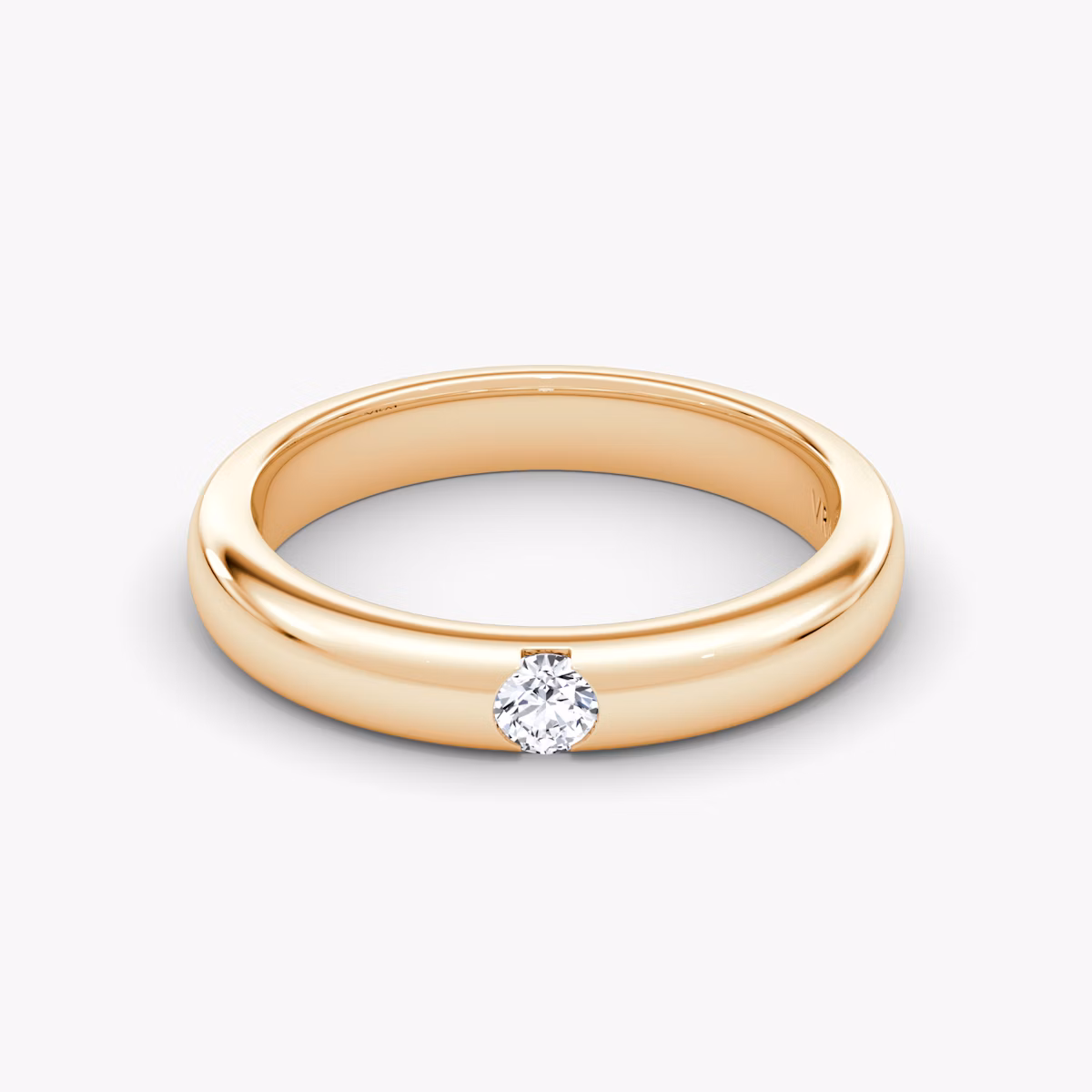 Decidedly sleek and elegant, this unisex design is a modern take on the classic Round Band. A semi-rounded polished surface gives this band a substantial appearance, while a single Round Brilliant VRAI created diamond adds the perfect touch of scintillation. Wear solo or stack with other rings.