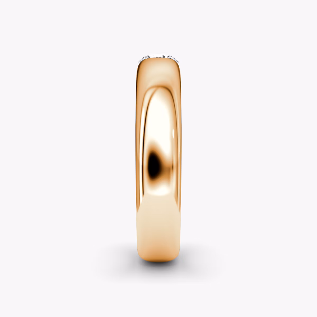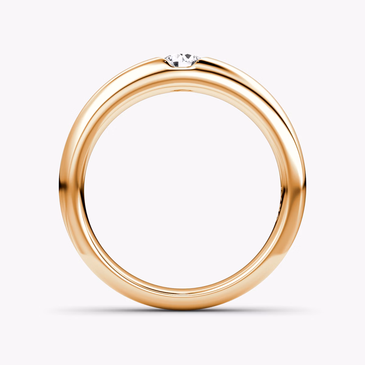 Decidedly sleek and elegant, this unisex design is a modern take on the classic Round Band. A semi-rounded polished surface gives this band a substantial appearance, while a single Round Brilliant VRAI created diamond adds the perfect touch of scintillation. Wear solo or stack with other rings.
