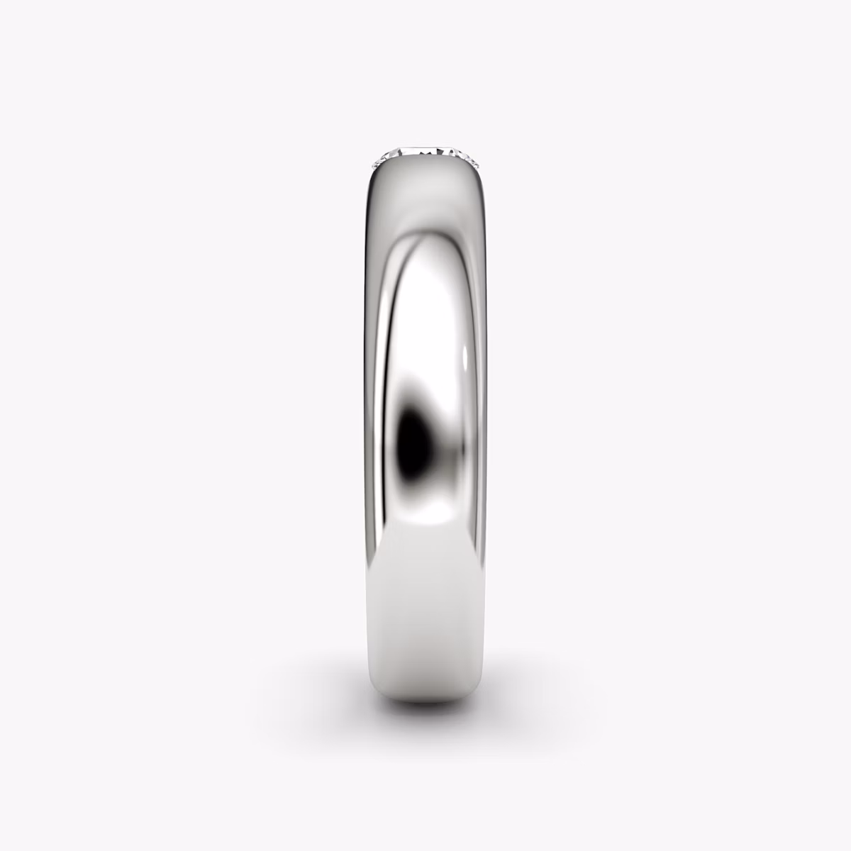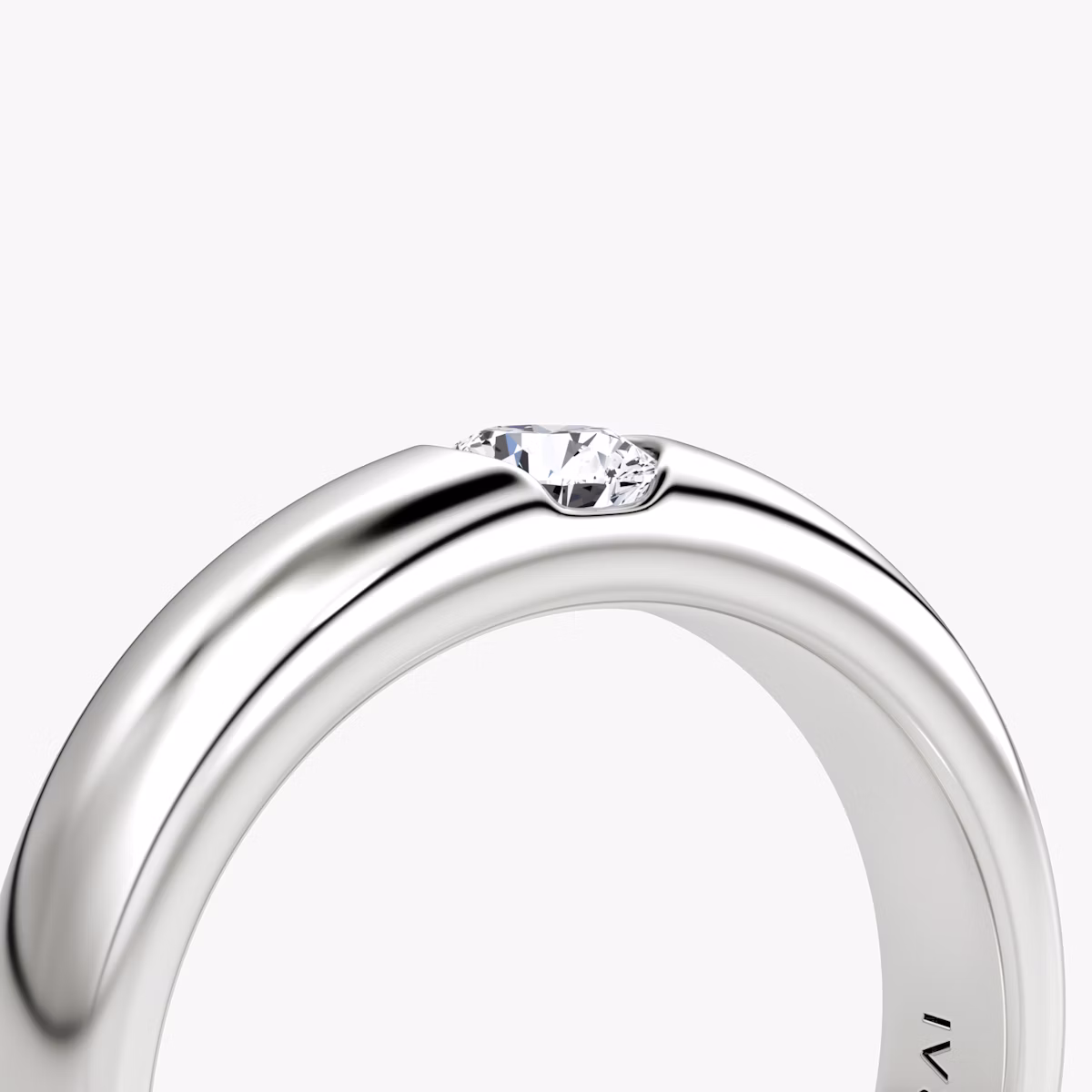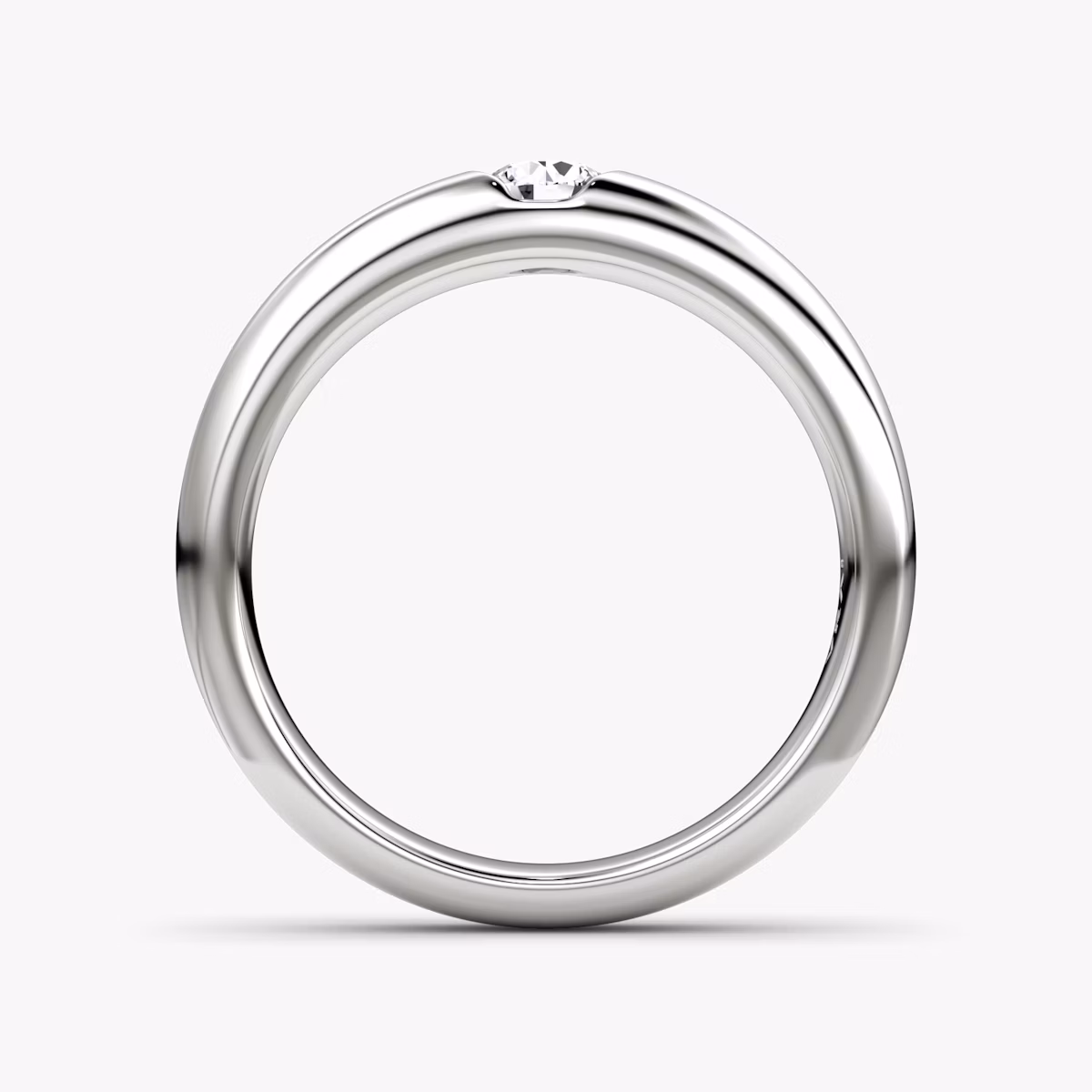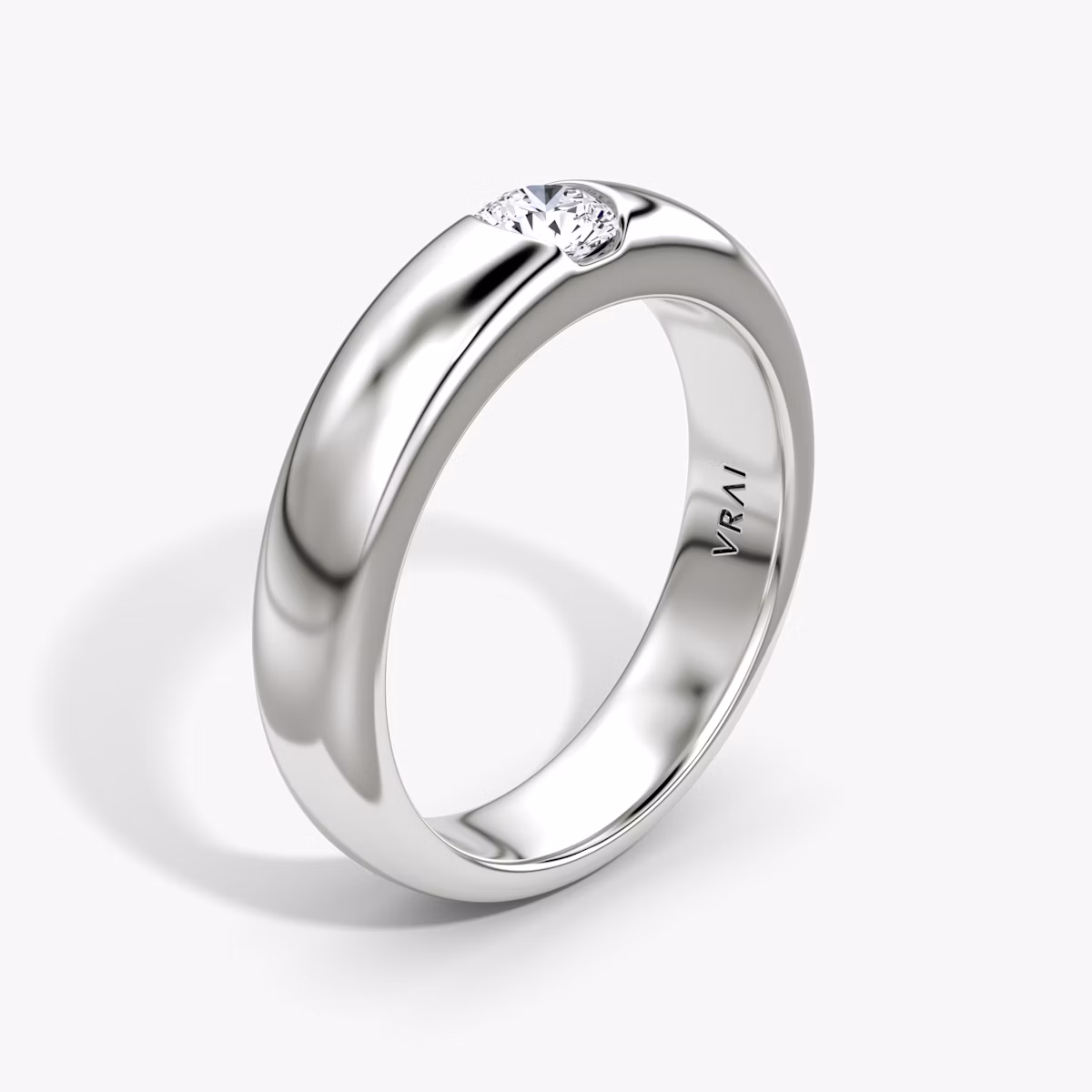 Decidedly sleek and elegant, this unisex design is a modern take on the classic Round Band. A semi-rounded polished surface gives this band a substantial appearance, while a single Round Brilliant VRAI created diamond adds the perfect touch of scintillation. Wear solo or stack with other rings.