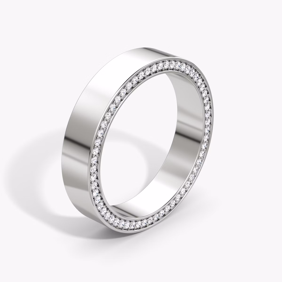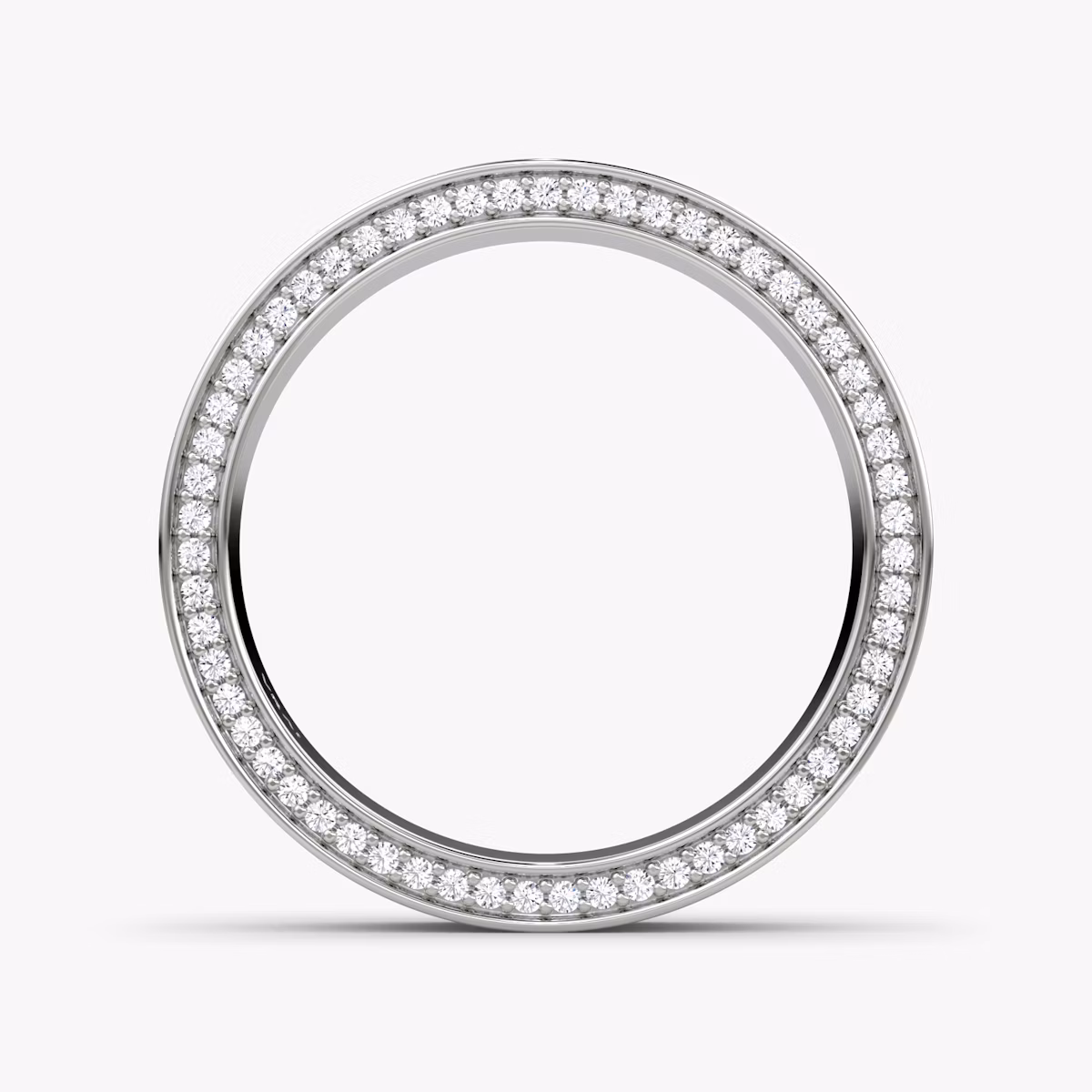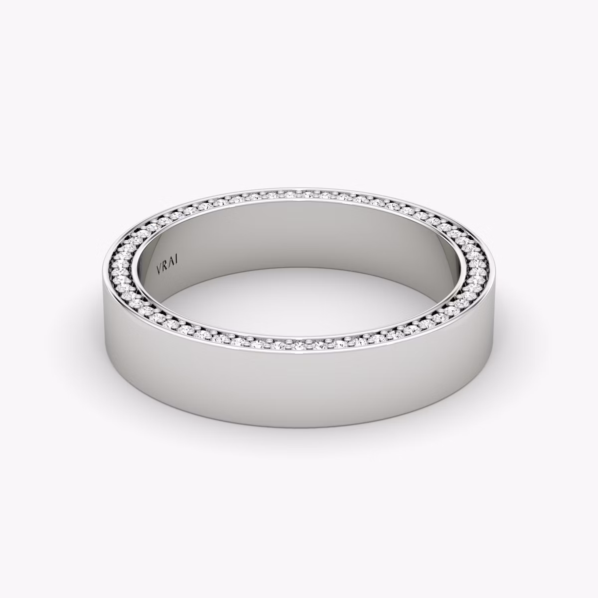 A brilliant take on a timeless symbol, the Pavé Border Band offers a more scintillating look to the beloved original. Clean lines meet the soft shimmer of an endless array of pavé set VRAI created diamonds that line both its inner and outer edges, resulting in a wedding band that is sophisticated yet unexpected.