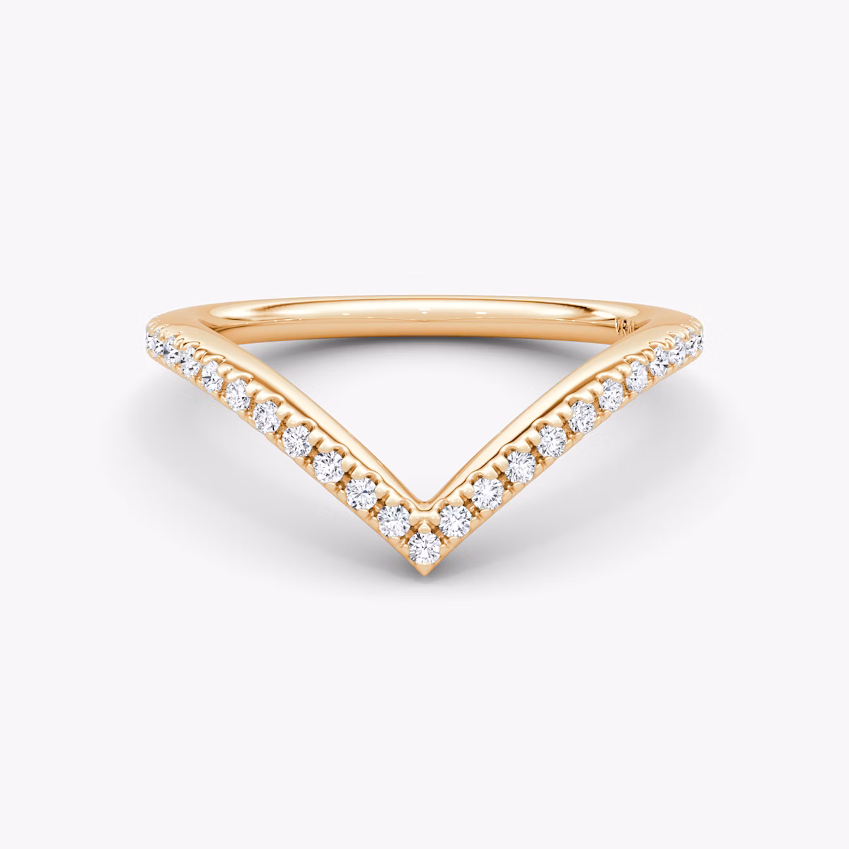A future classic, the Signature V wedding band is at once timeless yet untraditional. Elegant in its craftsmanship, this design can be worn with the V facing either direction and sits flush with our Signature V engagement ring. Choose Original or Petite for a design true to your style.