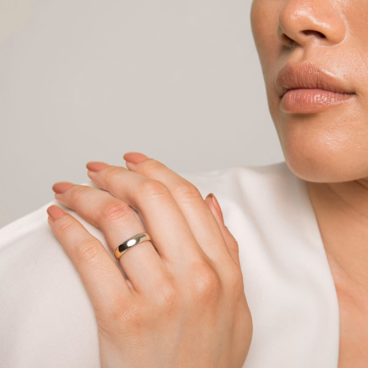Our classic signature band, the Round is a timeless symbol of love and commitment. A semi-rounded polished surface gives this comfort-fit band a substantial appearance. Perfect for wearing solo or paired with your engagement ring to enhance the brilliance of your VRAI created diamond.